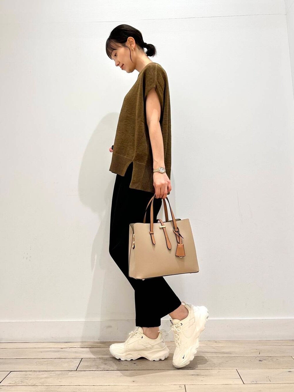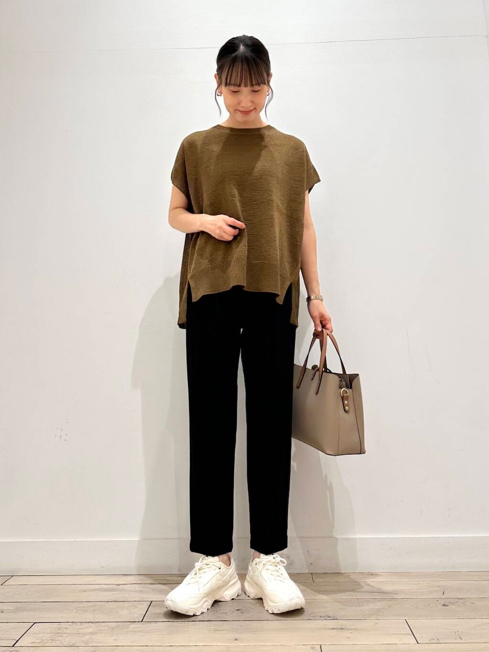 シャリ感のある薄手の軽いニットなので、まだまだ暑い今の時期からも着ていただきやすいです^ ^
