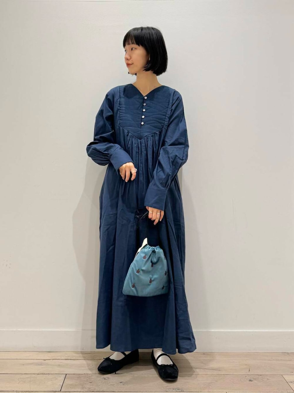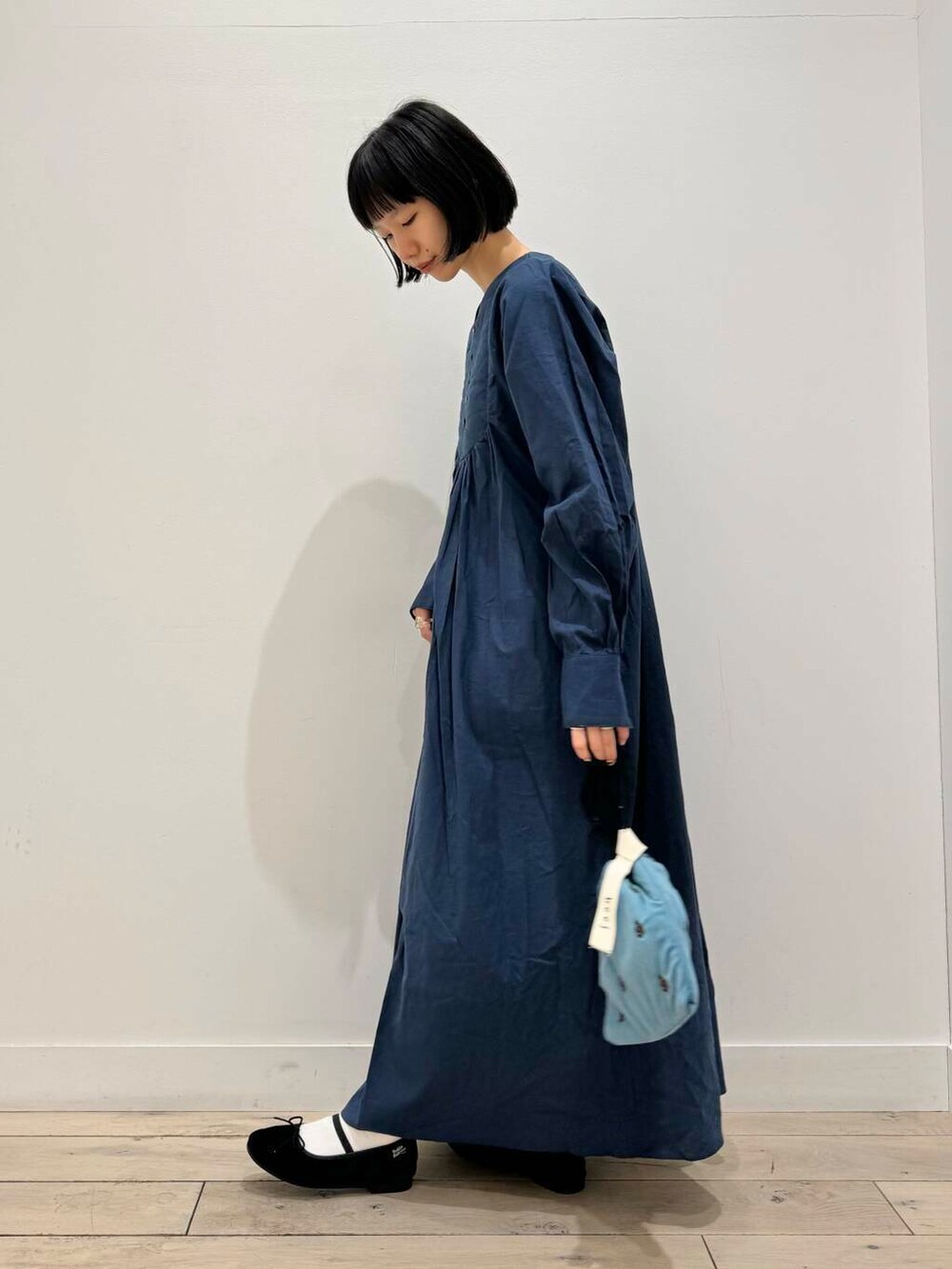 更に秋冬感出したくて、ベロアのバレエシューズと巾着バッグを合わせました^ ^