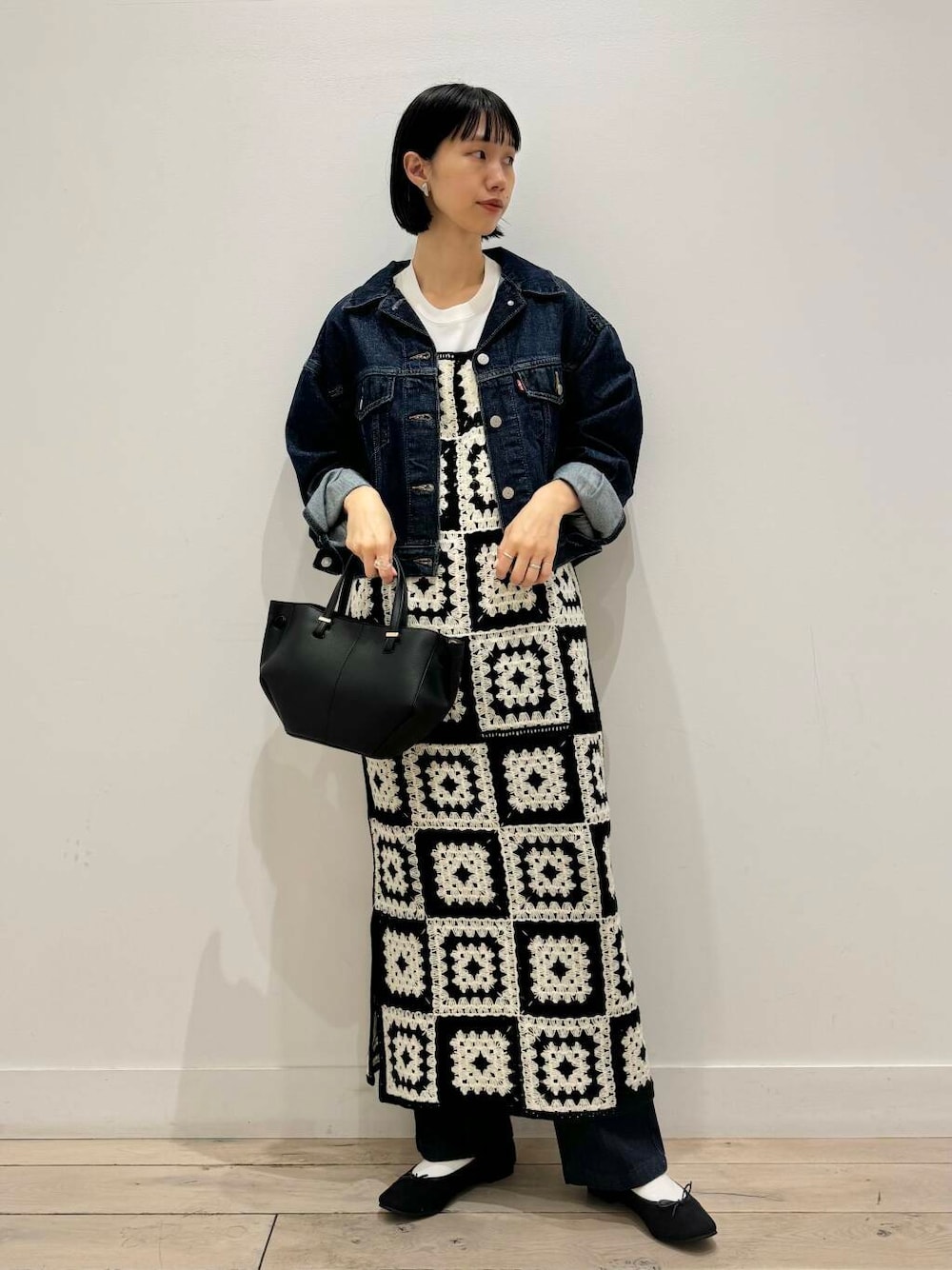 間にワンピースがあるとデニムonデニム挑戦しやすいのでオススメです◎