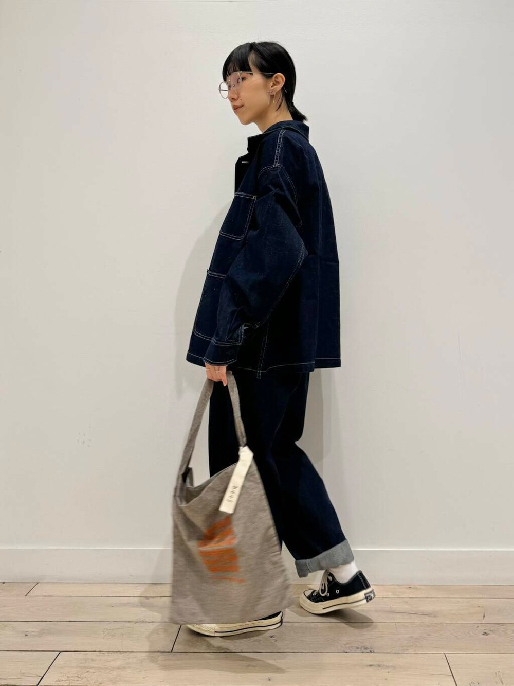 かぐれのデニムカバーオール、ユニセックスなのでゆったりしててデニムなのに動きやすいです◎
