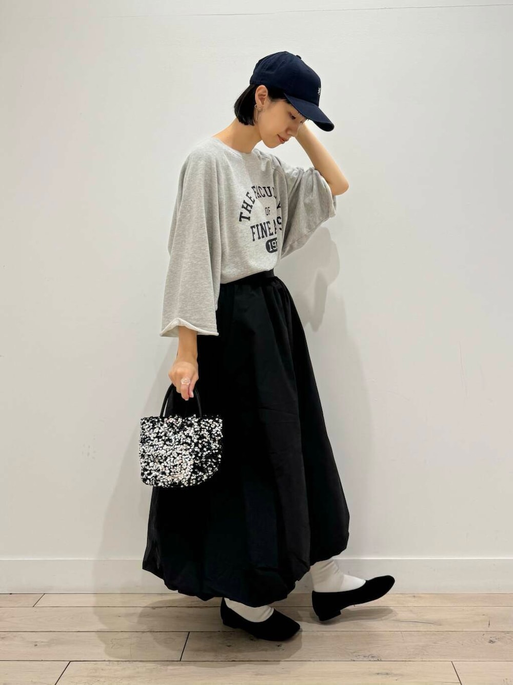 スウェットとキャップでカジュアル感ありますが、足元は秋らしいベロアのメッシュパンプスで少しだけきれい目もいれました^ ^