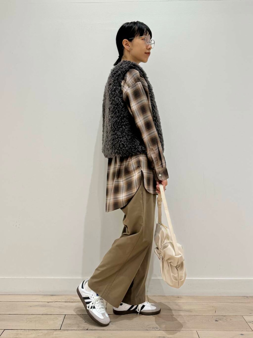 パンツはレザーじゃないのにレザーっぽく見えるレザーライクパンツなのです!軽くて履きやすいので、レザー履かれない方、挑戦しやすいと思います!
