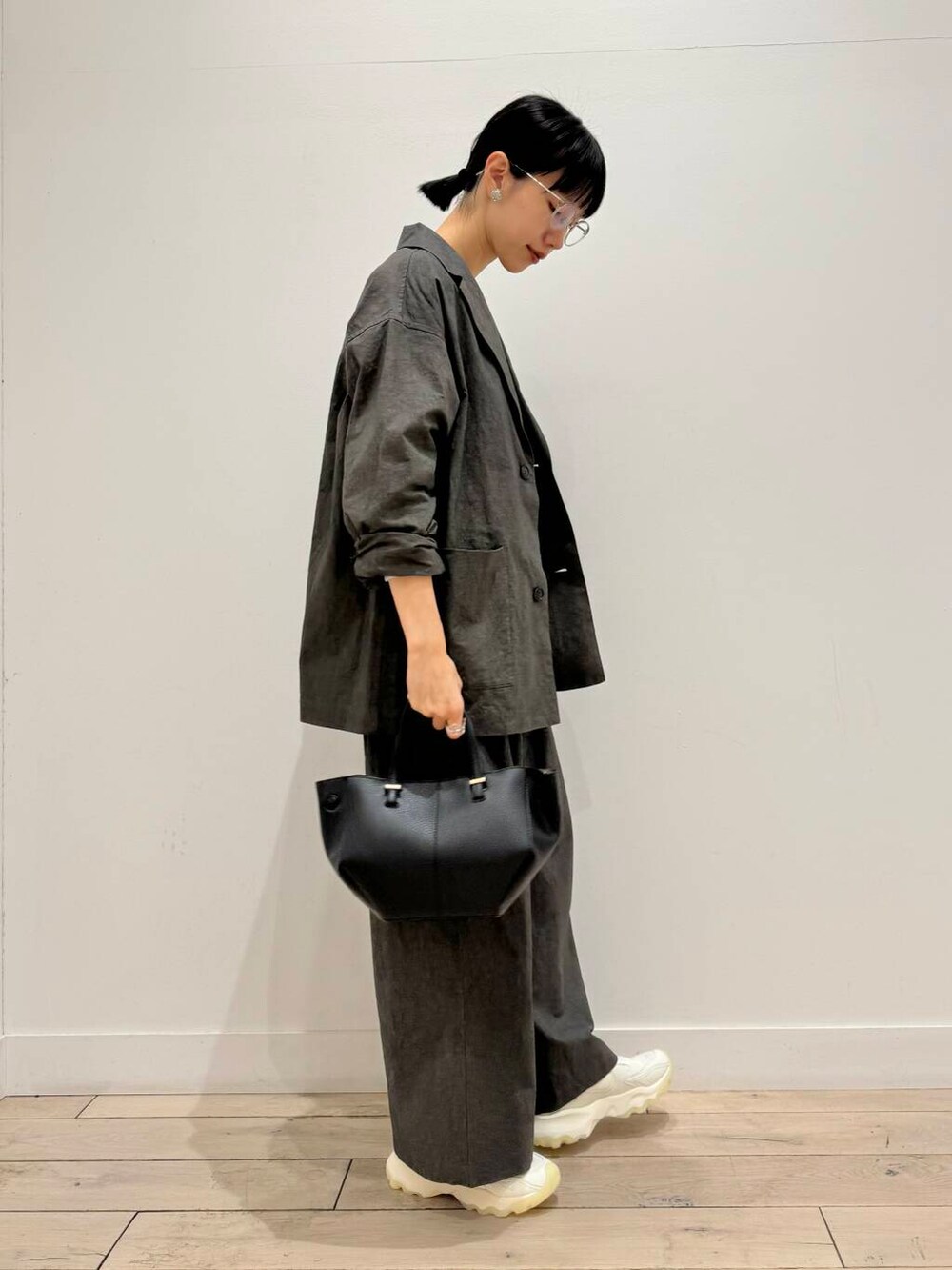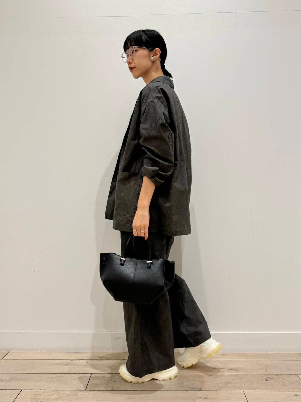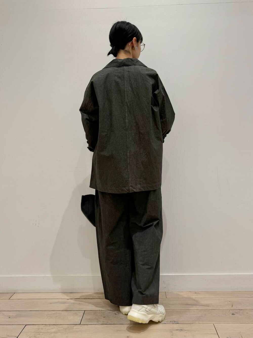 ローファーと迷いに迷いましたが、やはりちょっとカジュアルにしたくてスニーカーで合わせてます👟