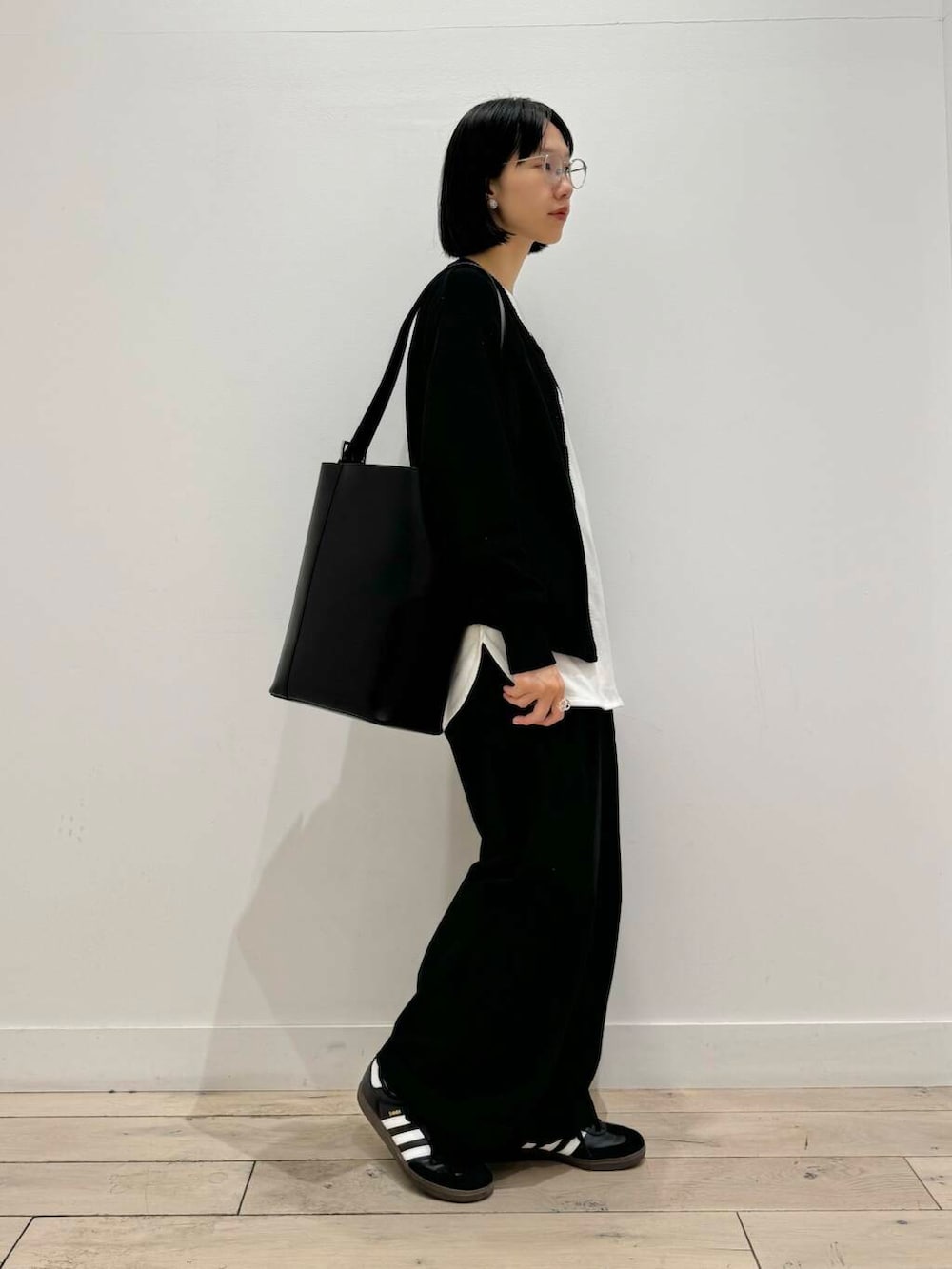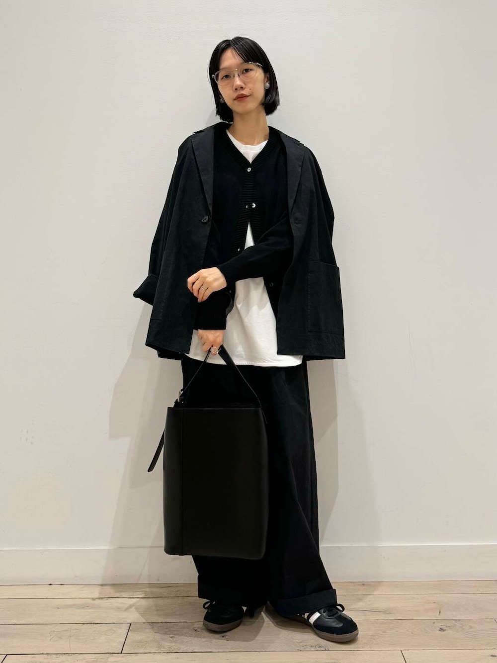 ジャケットやバッグはかっちり、ロンTやスニーカーでラフさを入れてます◎ロンTインするか迷いましたが、ゆるっと出してみました^ ^