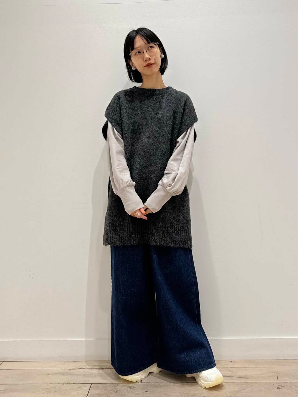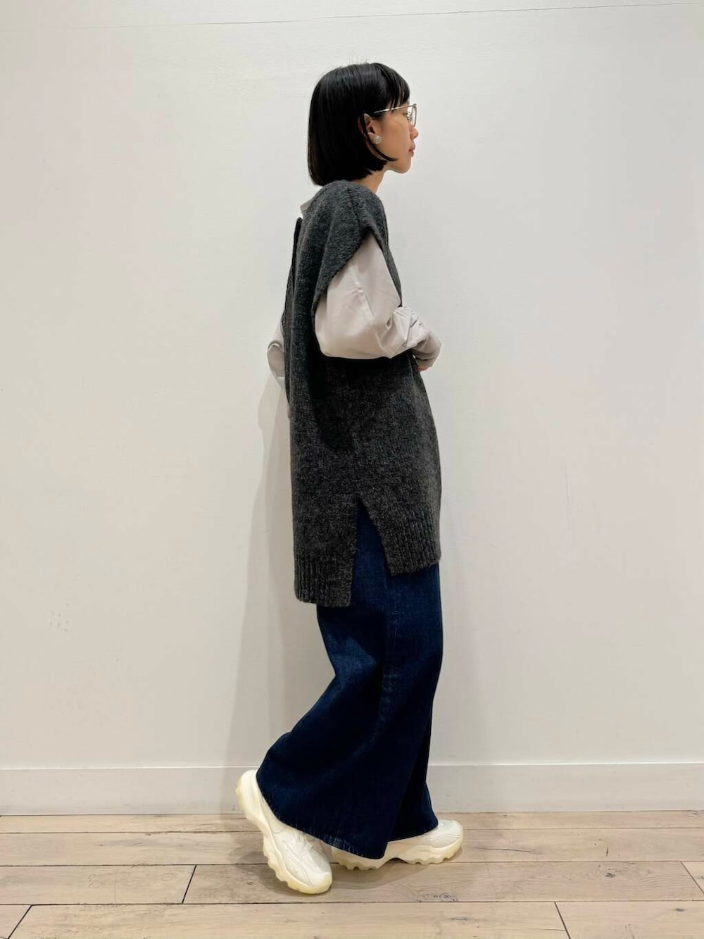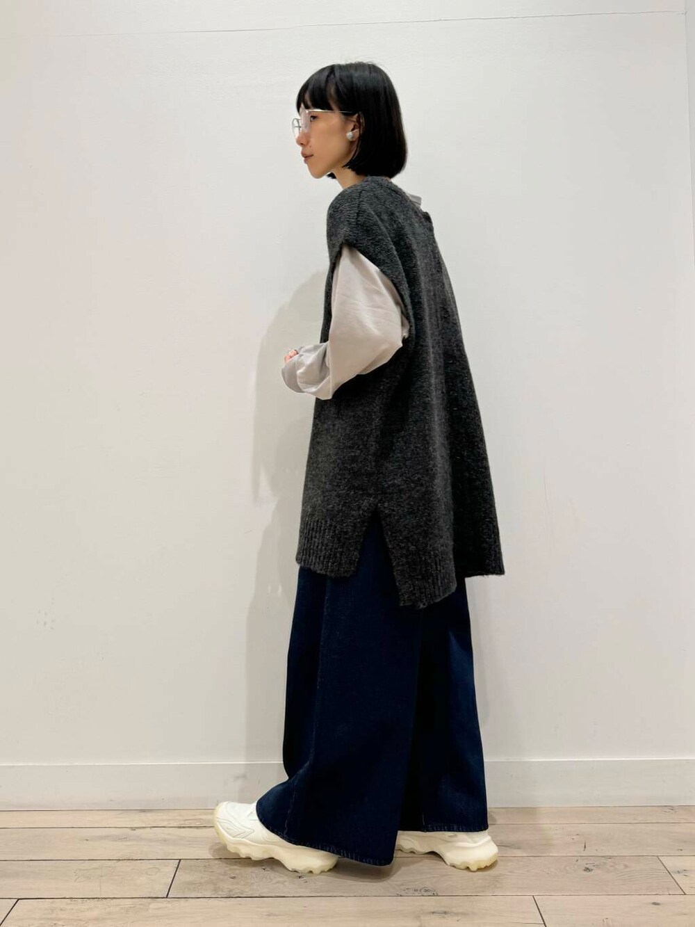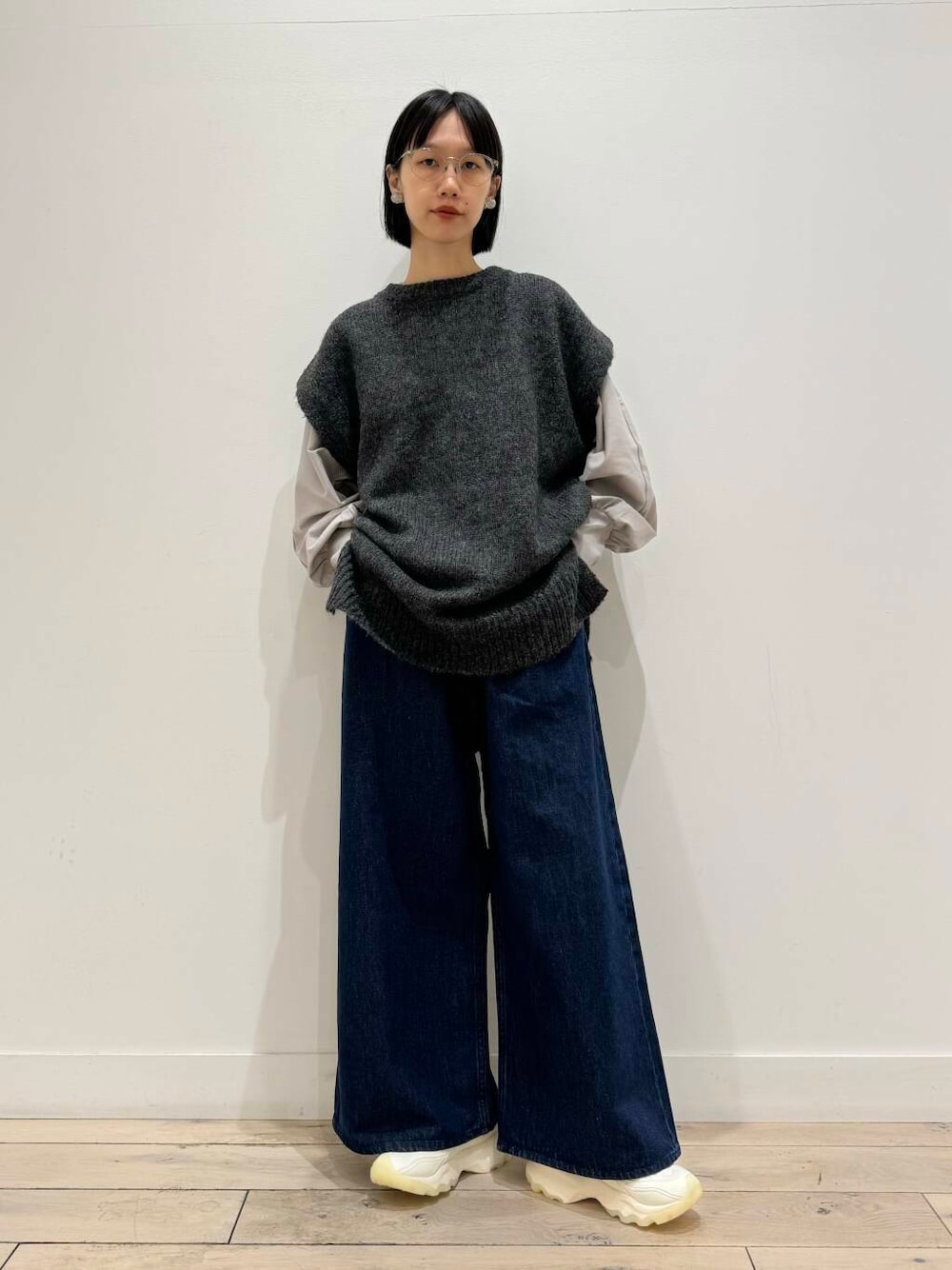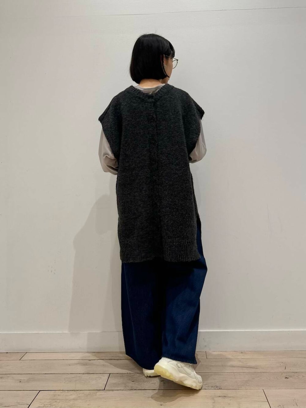 ちょっと長めのニットベスト、ゆったりしていて前後どちらも着れる2way仕様です!大きめですが重たくないです◎