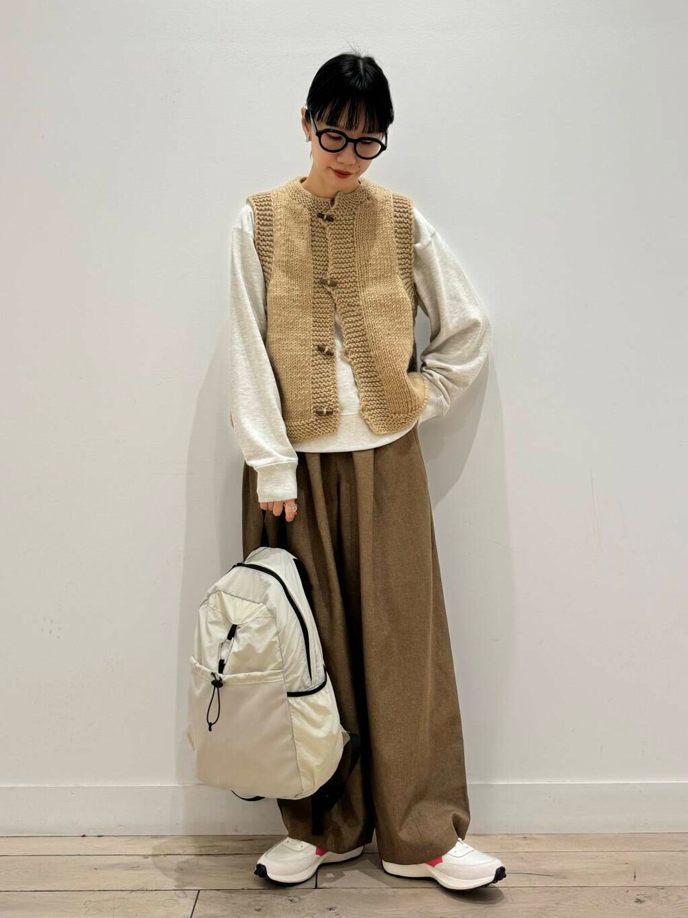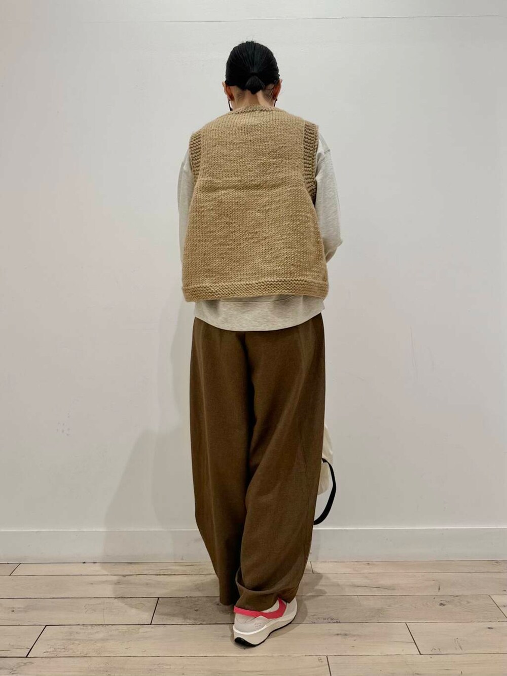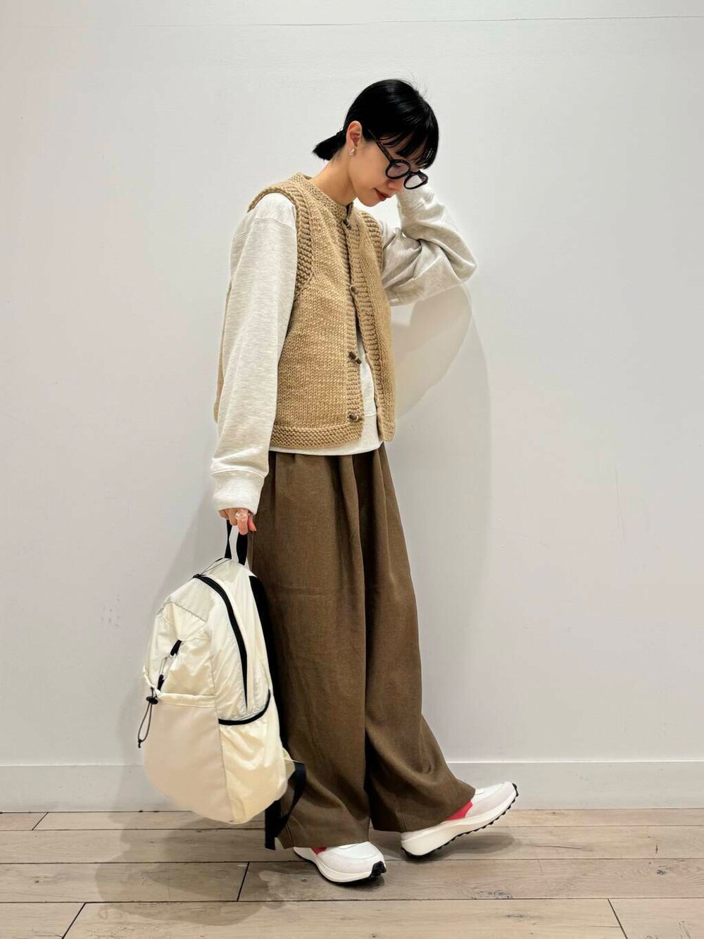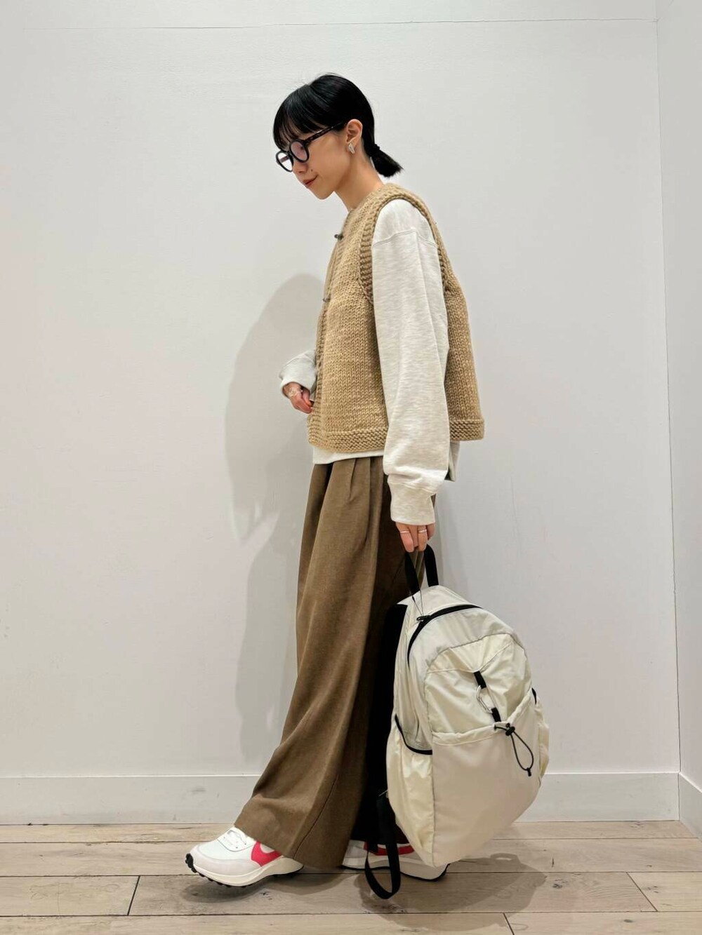 KHWOPAのベストと合わせてブラウンコーデにしました🐫チラッと見えるナイキのピンクがポイントカラーです♪