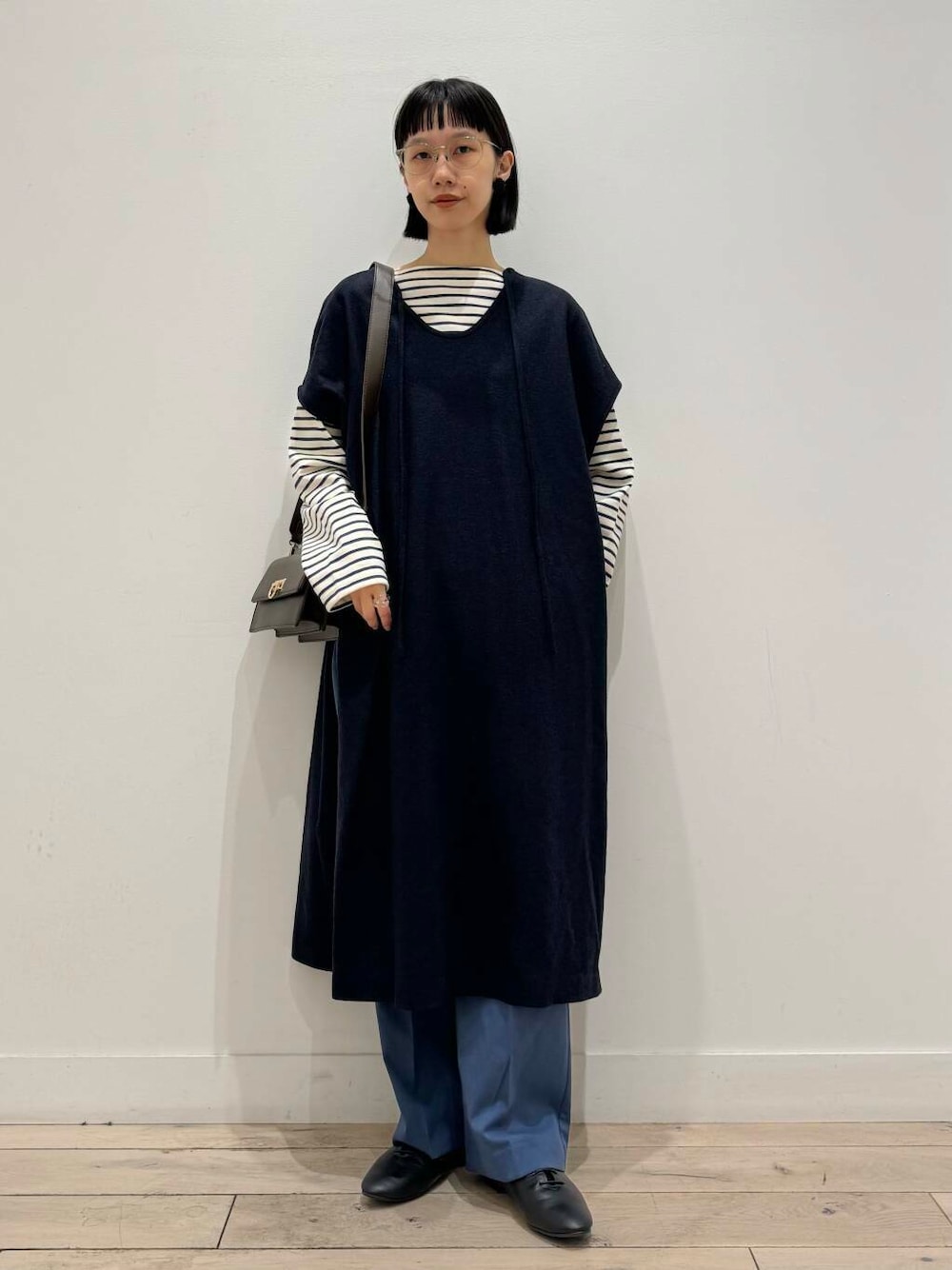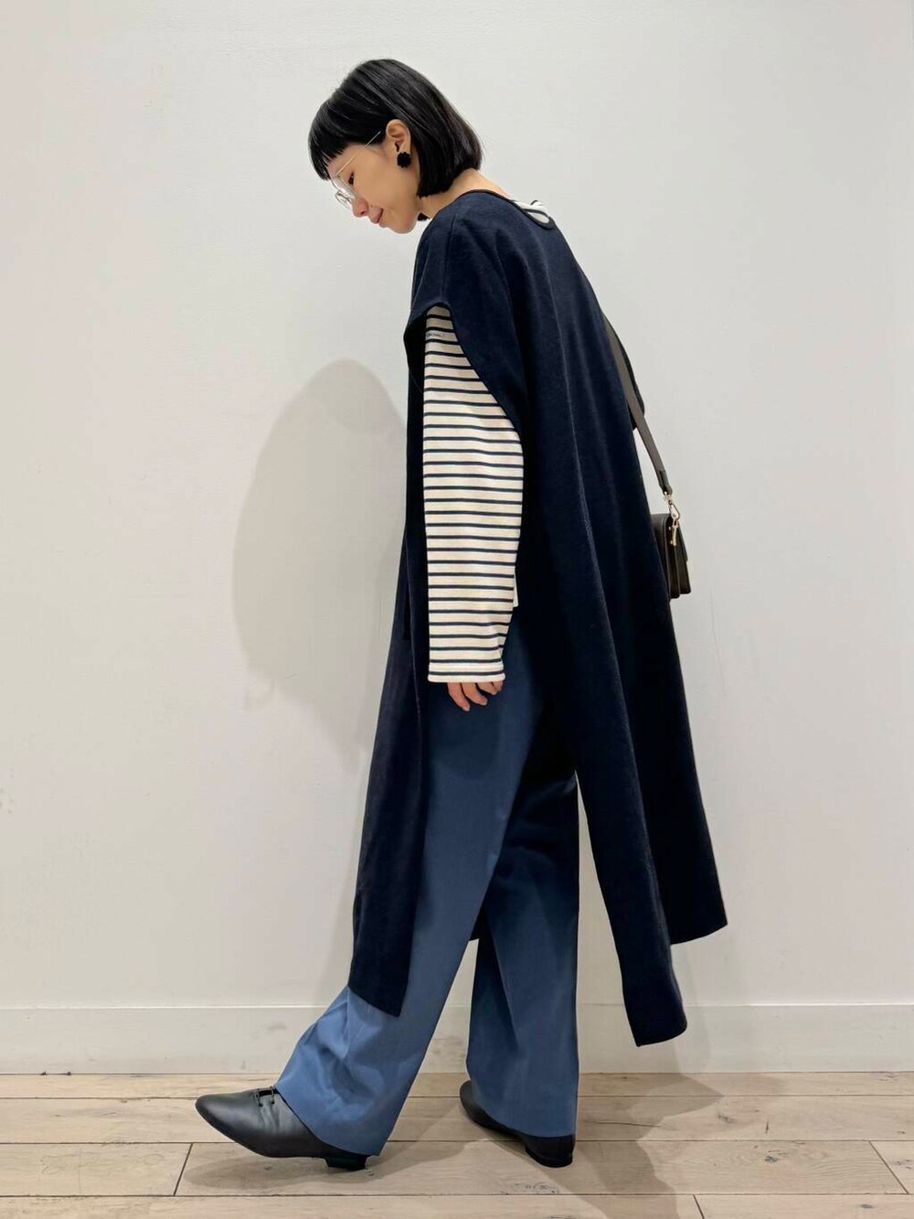ネイビーの色味なので、ボーダーやボトムも青系で合わせました🩵