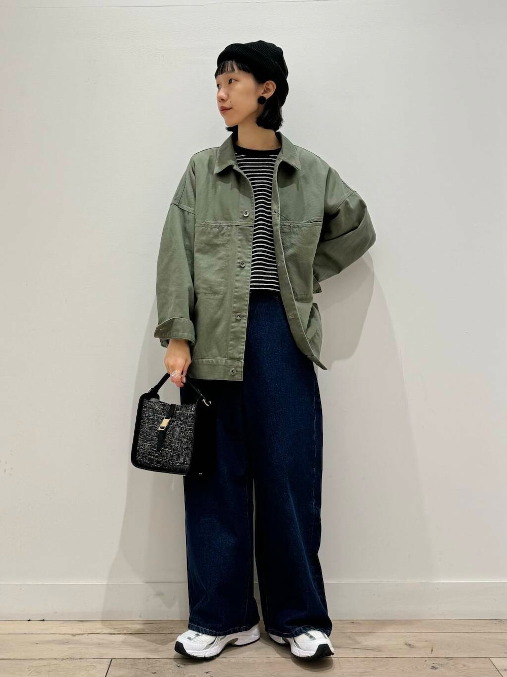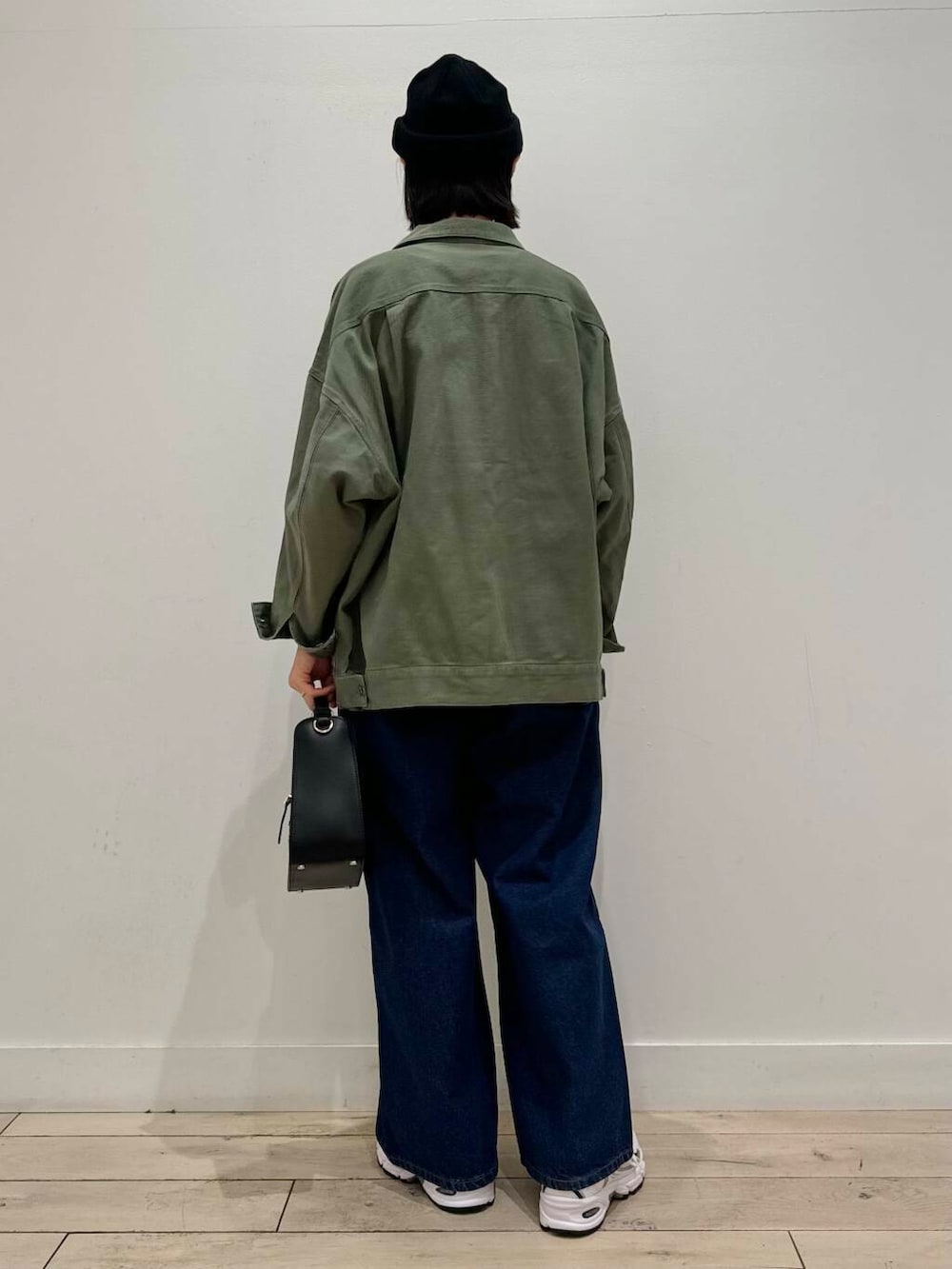ドルマンジャケットなのでタックフライスのようなトップスでもゴワゴワせず着用していただけます◎