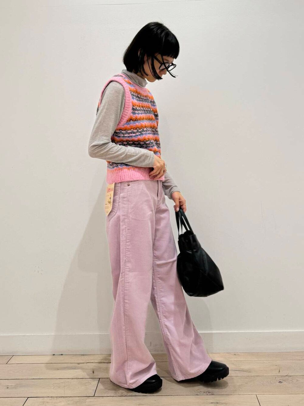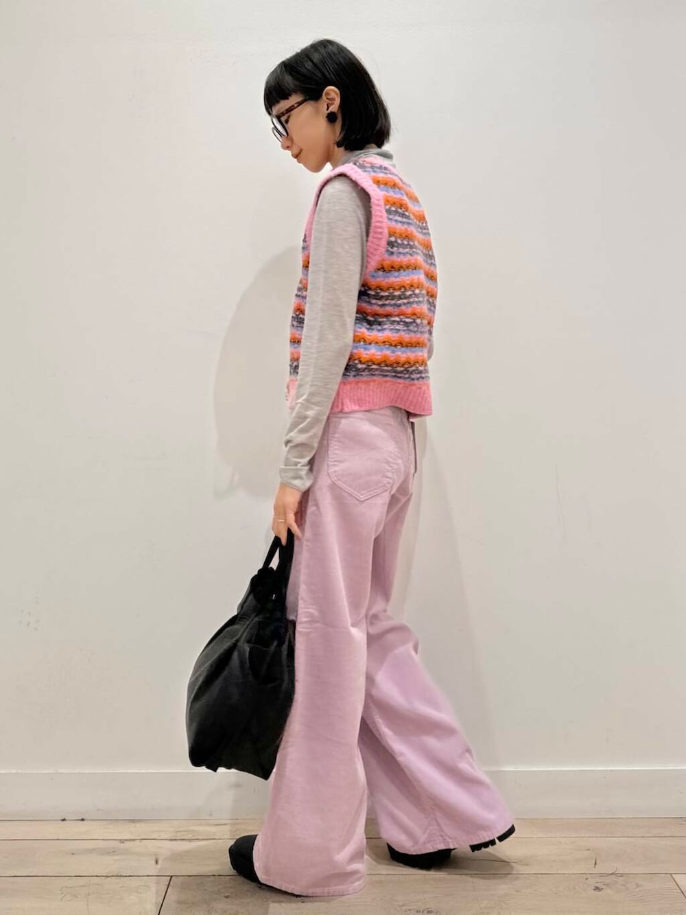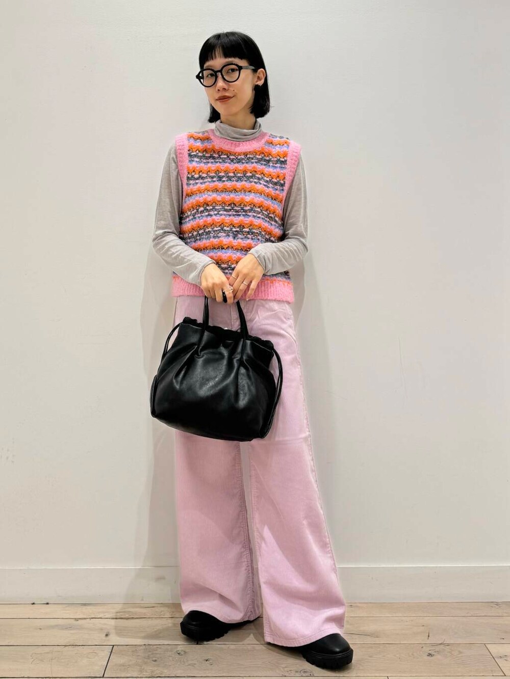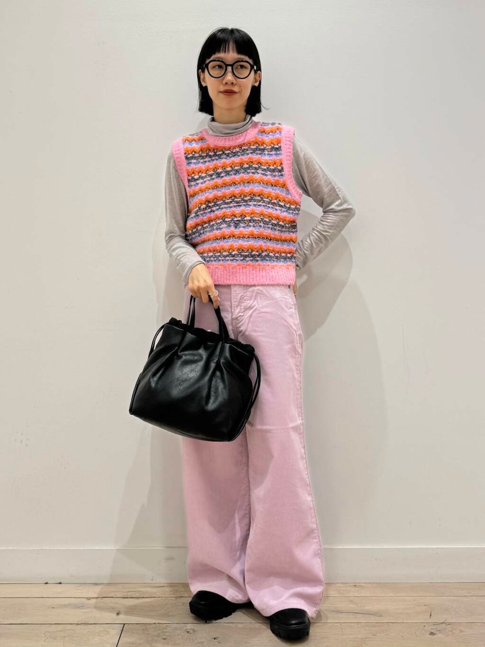 かわいくなりすぎないようインナーは落ち着いたグレー、小物は黒にしました^ ^