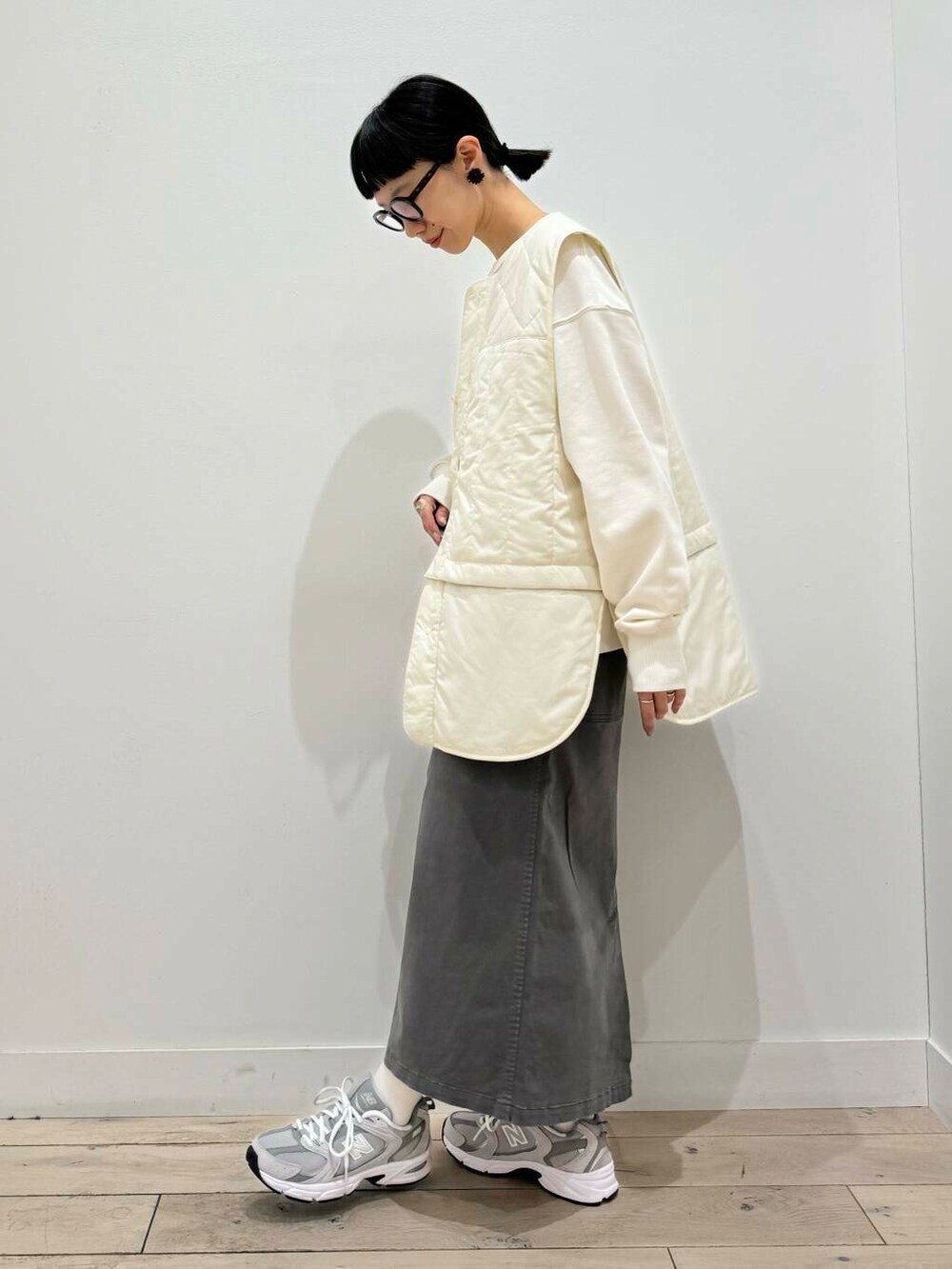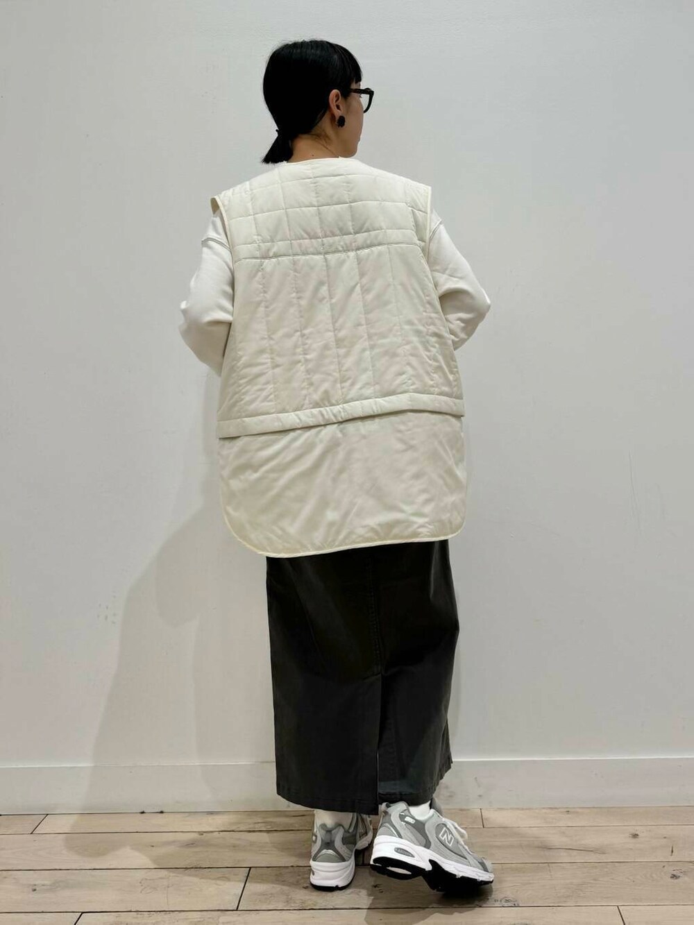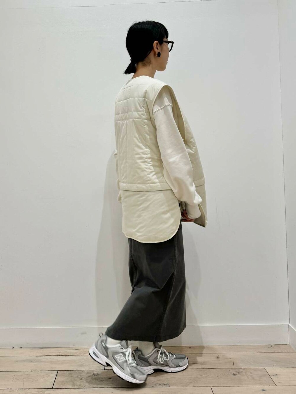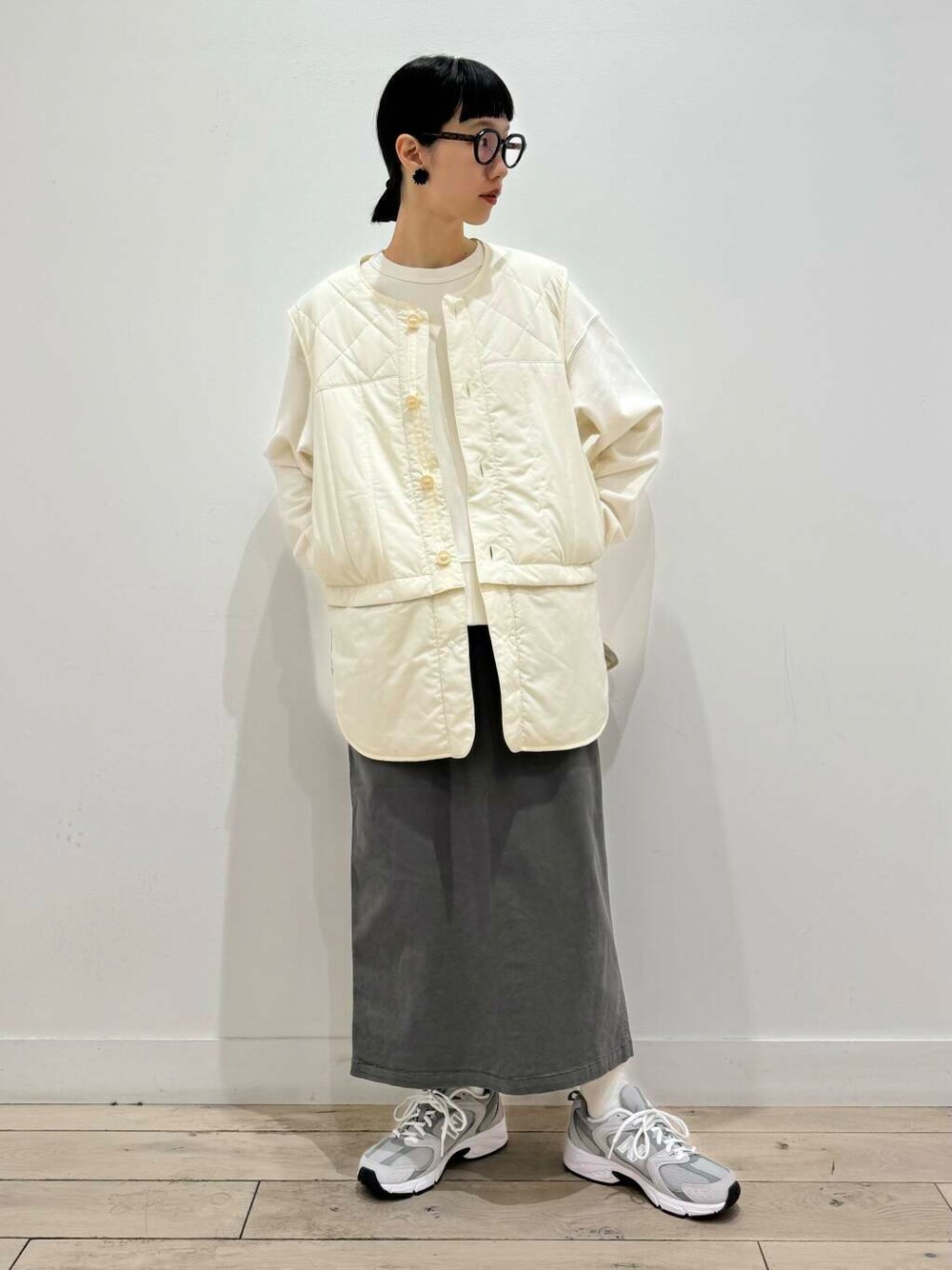 2way仕様になっており、こちらは長くして着用してます。タイトスカートとベストで縦ラインを意識したカジュアルスタイルにしました◎