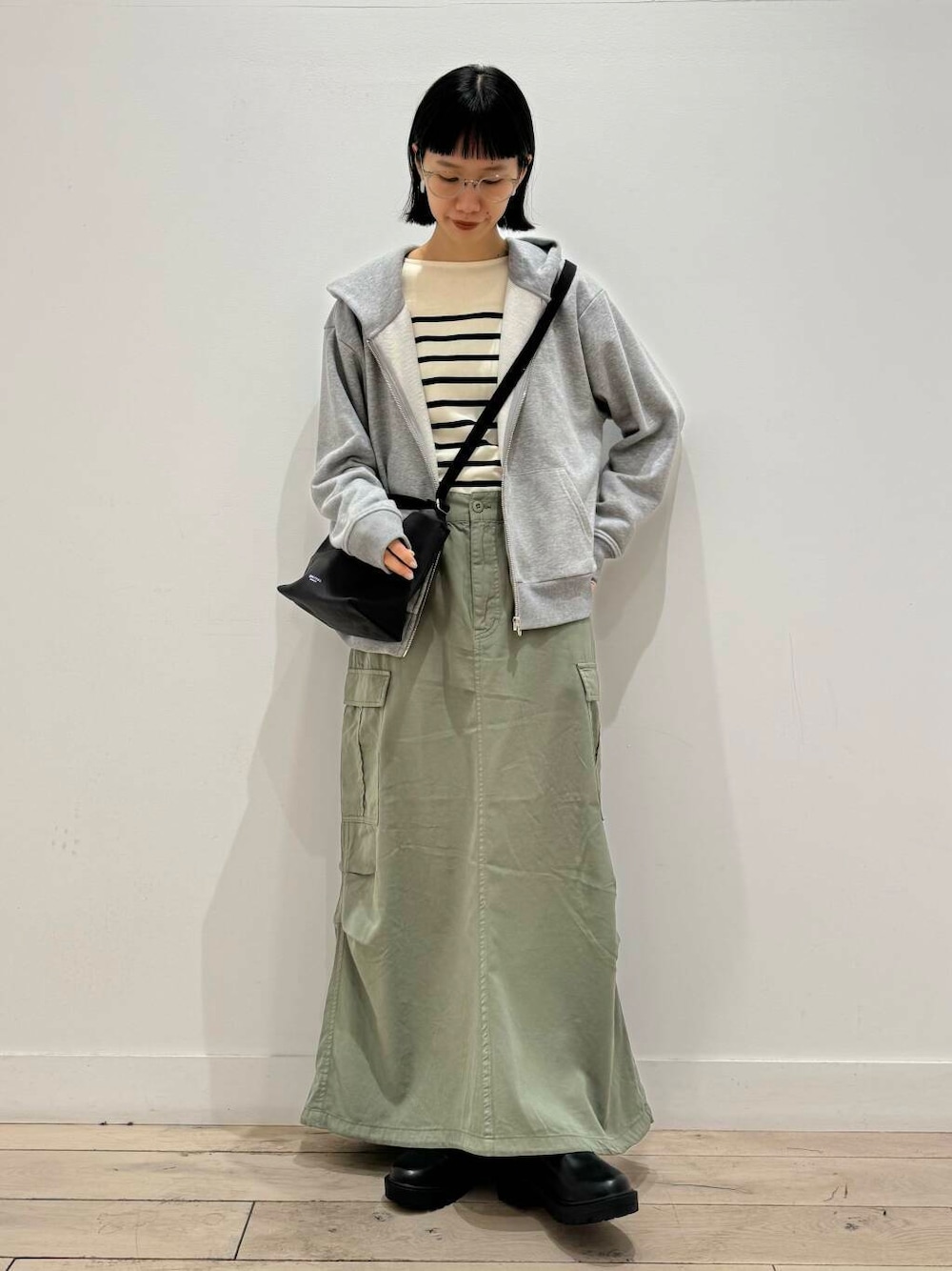 今回そのまま着用してますが、スカートの裾にコードがついてるので絞って形を変えても着れます◎