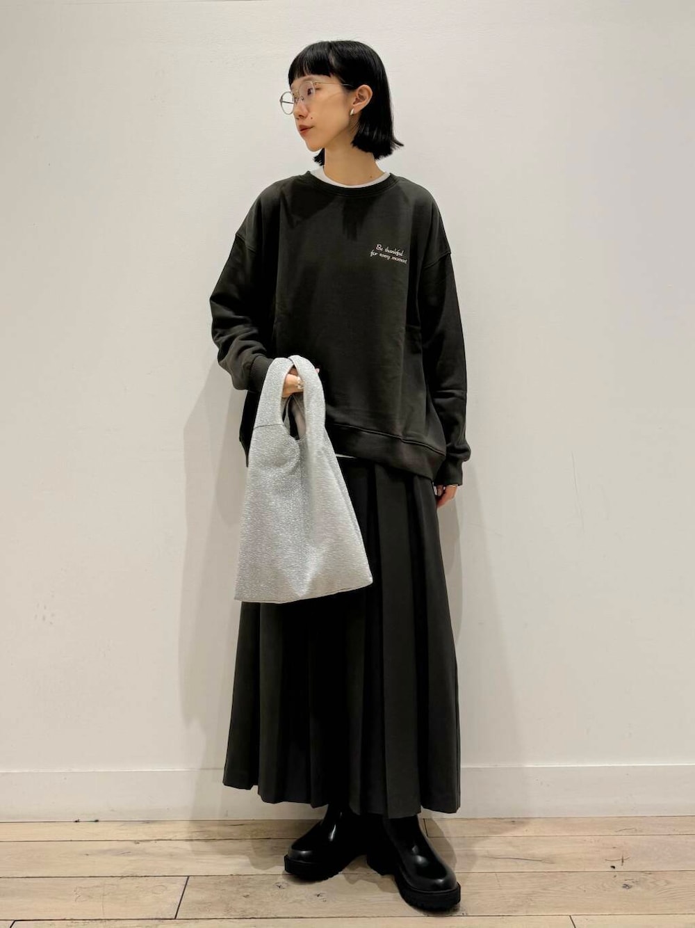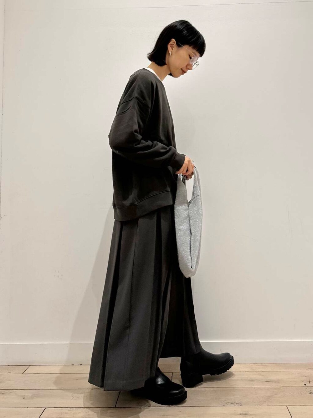 プリーツスカートはきれいめなイメージですが、スウェット合わせもカジュアルでとってもかわいいです◎