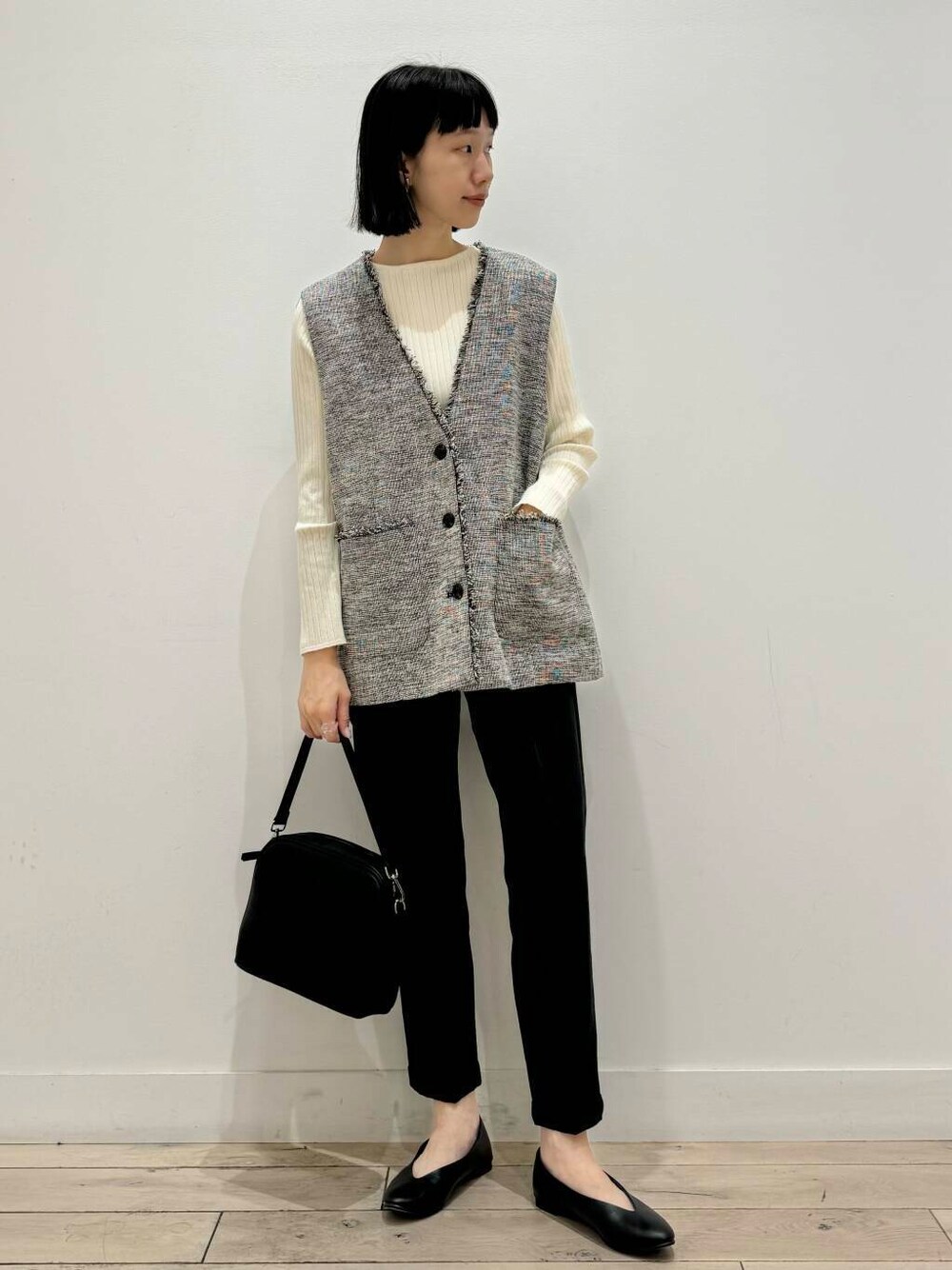 カジュアル感もありますが、ツイードベストがキレイめも出してくれます◎どのアイテムも普段使いしやすいので、その日限りにならず着回し出来ます!