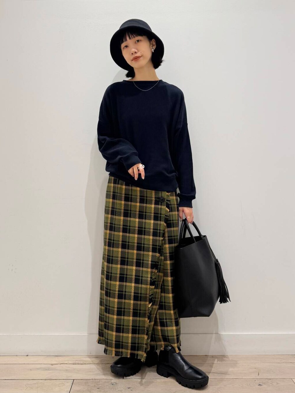 腰部分で履いてるのですが、わたしの身長でもブーツがしっかりみえる丈です☺️