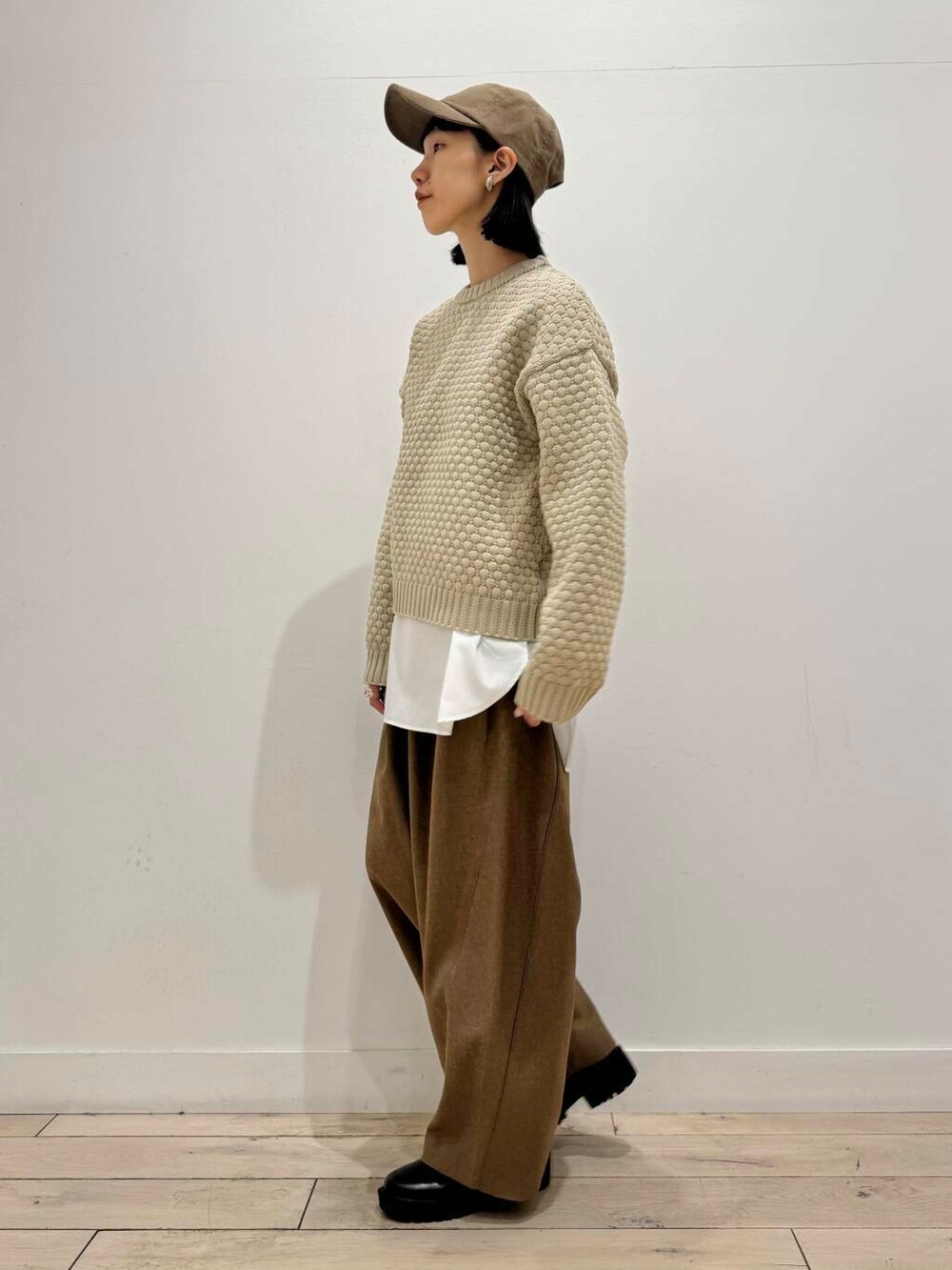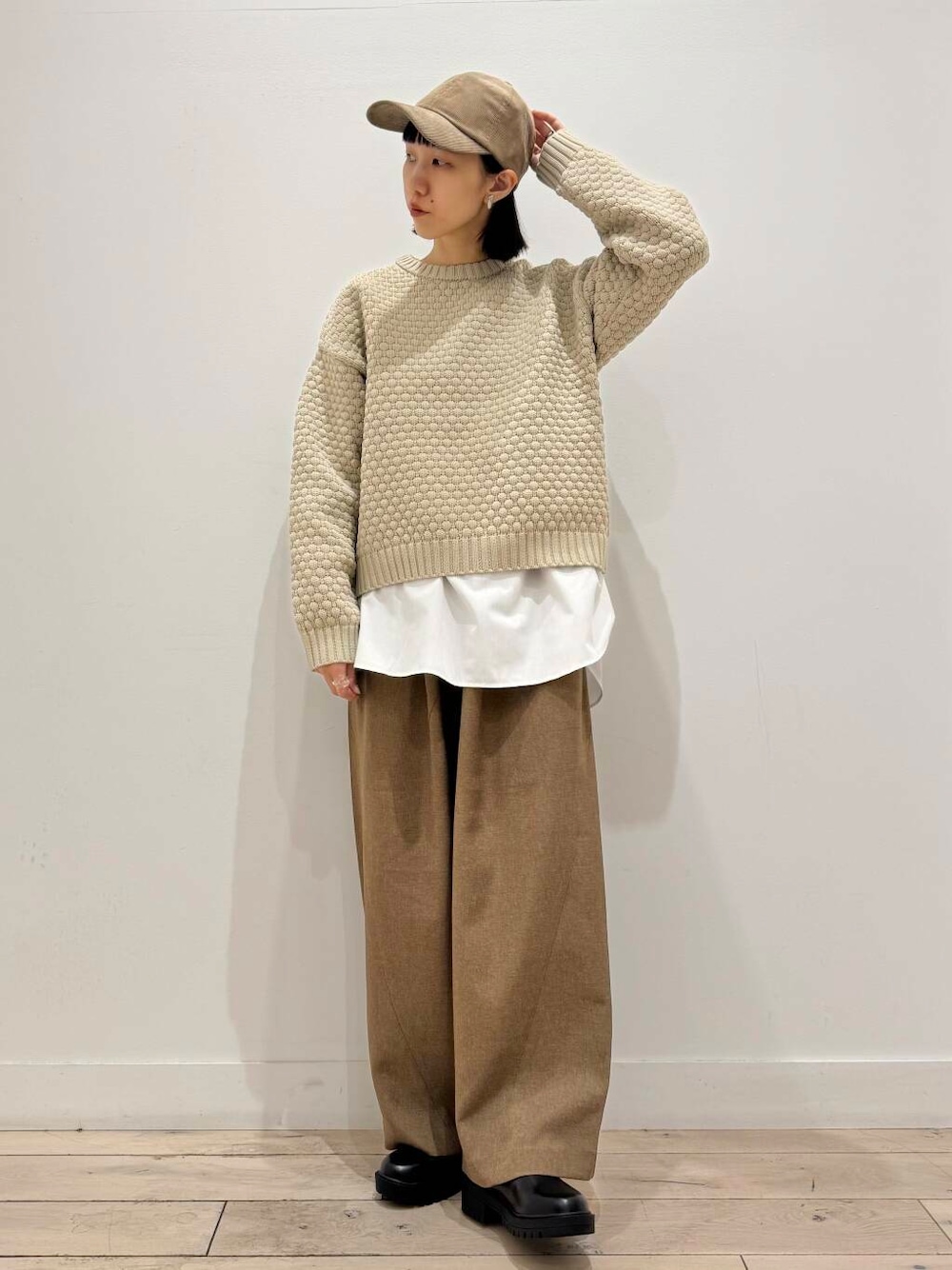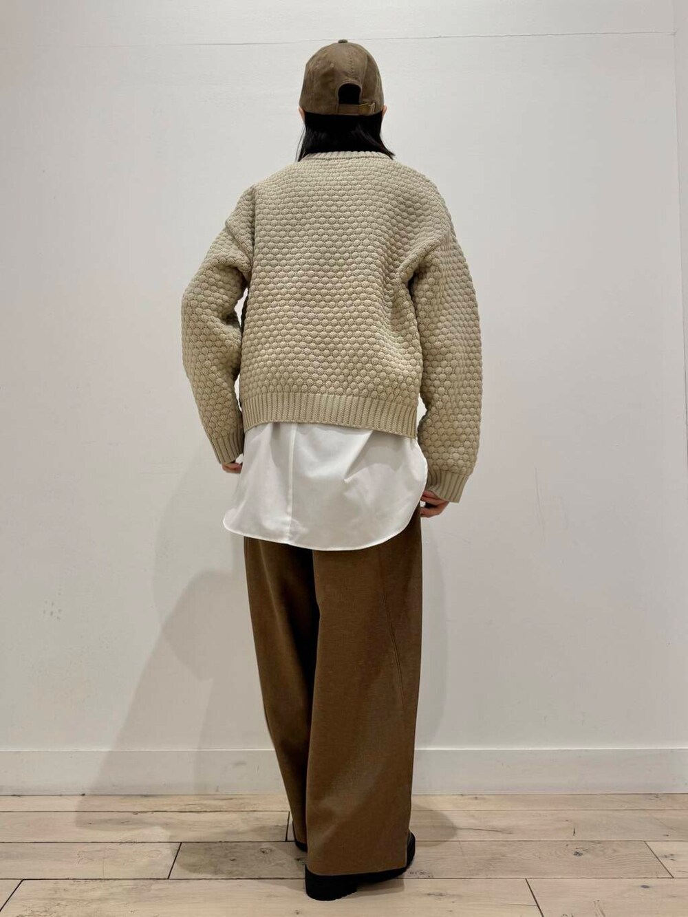 ポップコーン編みと言う名前がもうかわいいですよね🍿ウールは入っていませんが、張り感のある糸を使っているので、程よい膨らみがあります◎