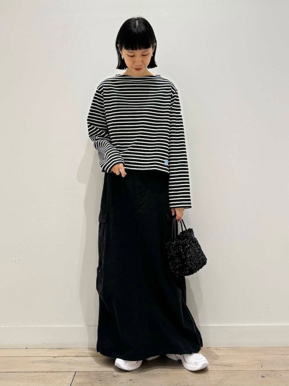 トップスはクロップド丈なので、インせずバランスとってくれます◎かといって短すぎないので、インがすきじゃない方におすすめです!