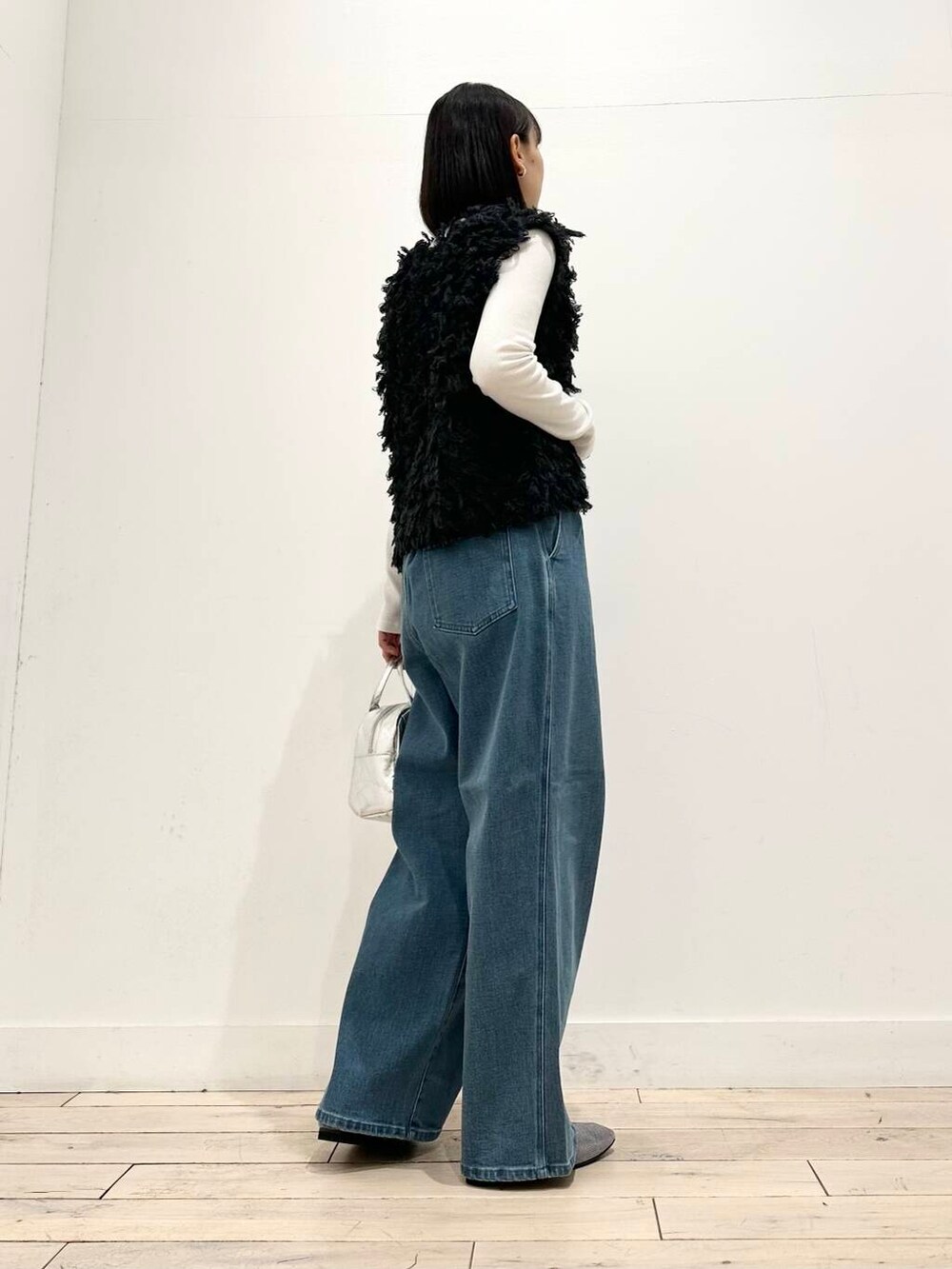 ニットベストやボアベストって横から見た時のボリューム感がいつも気になって、自分には似合わないな〜と思っていたのですが、こちらのニットベストはボリュームも控えめで、横から見た時のシルエットもすっきりとしていて、いっきにお気に入りの一着になりました♡