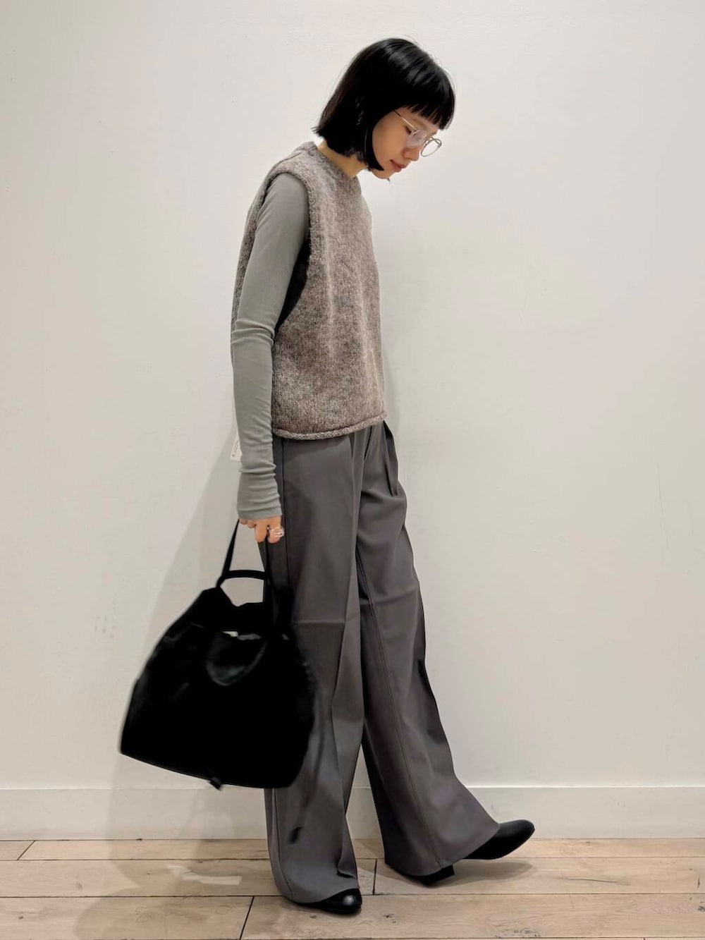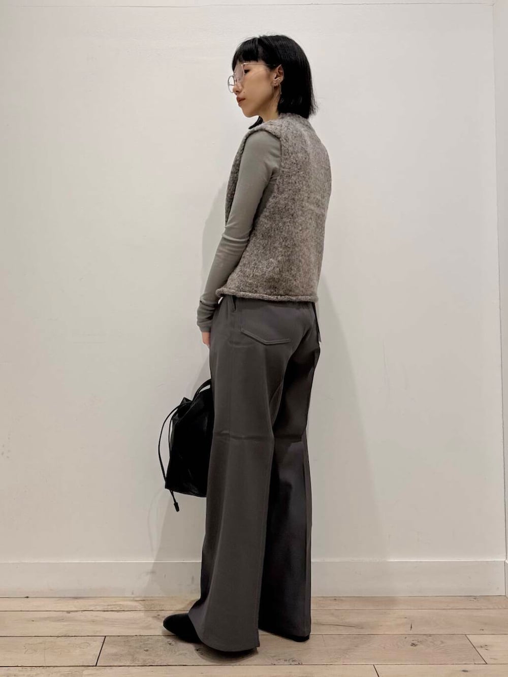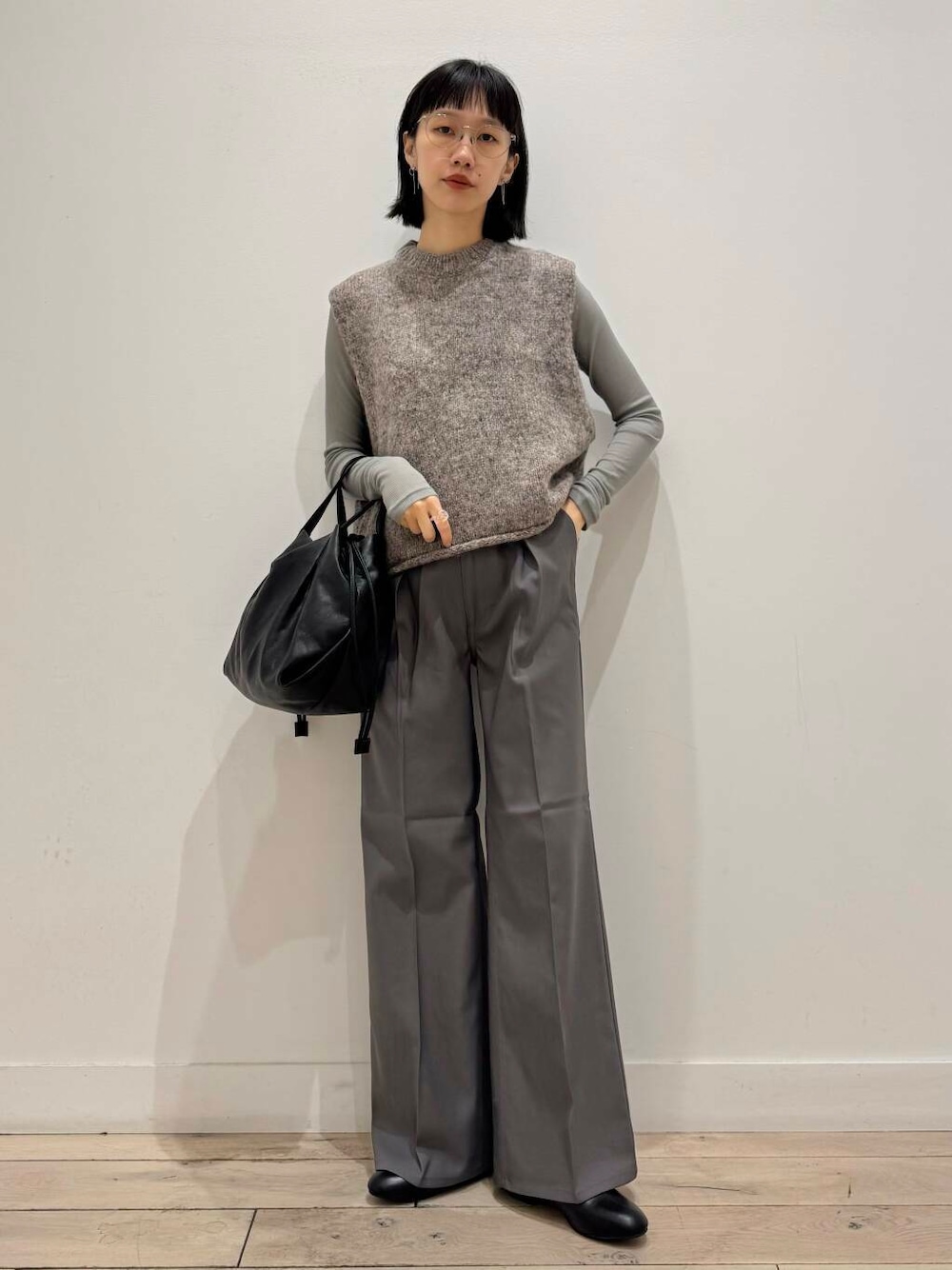 wranglerのワイドパンツ、形が綺麗すぎて3色とも欲しくなってます…ヒールを履いて、裾がギリギリつかない丈です🥺
