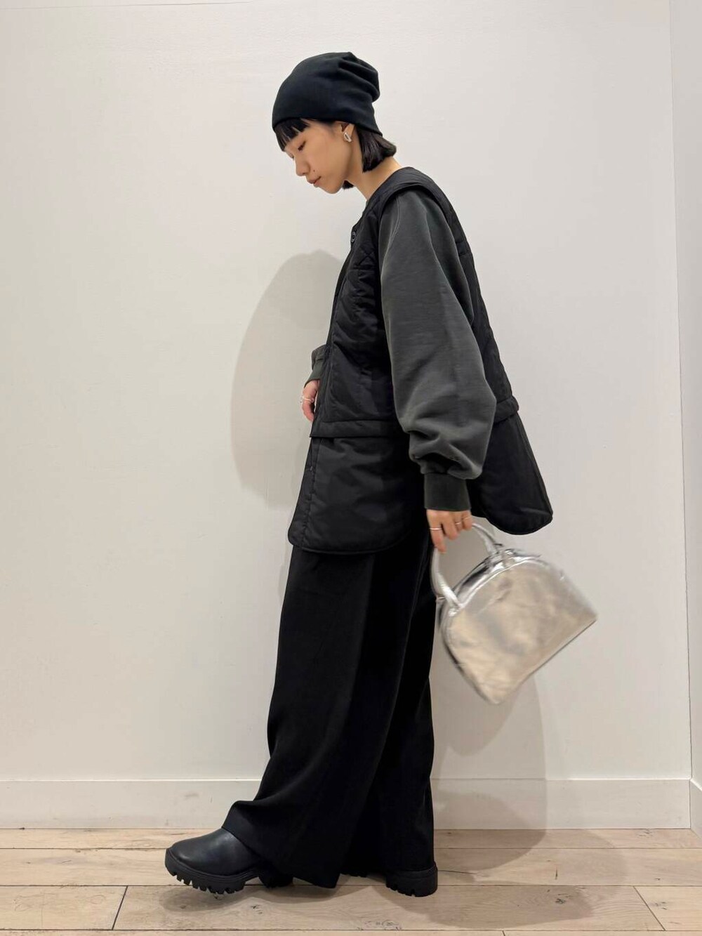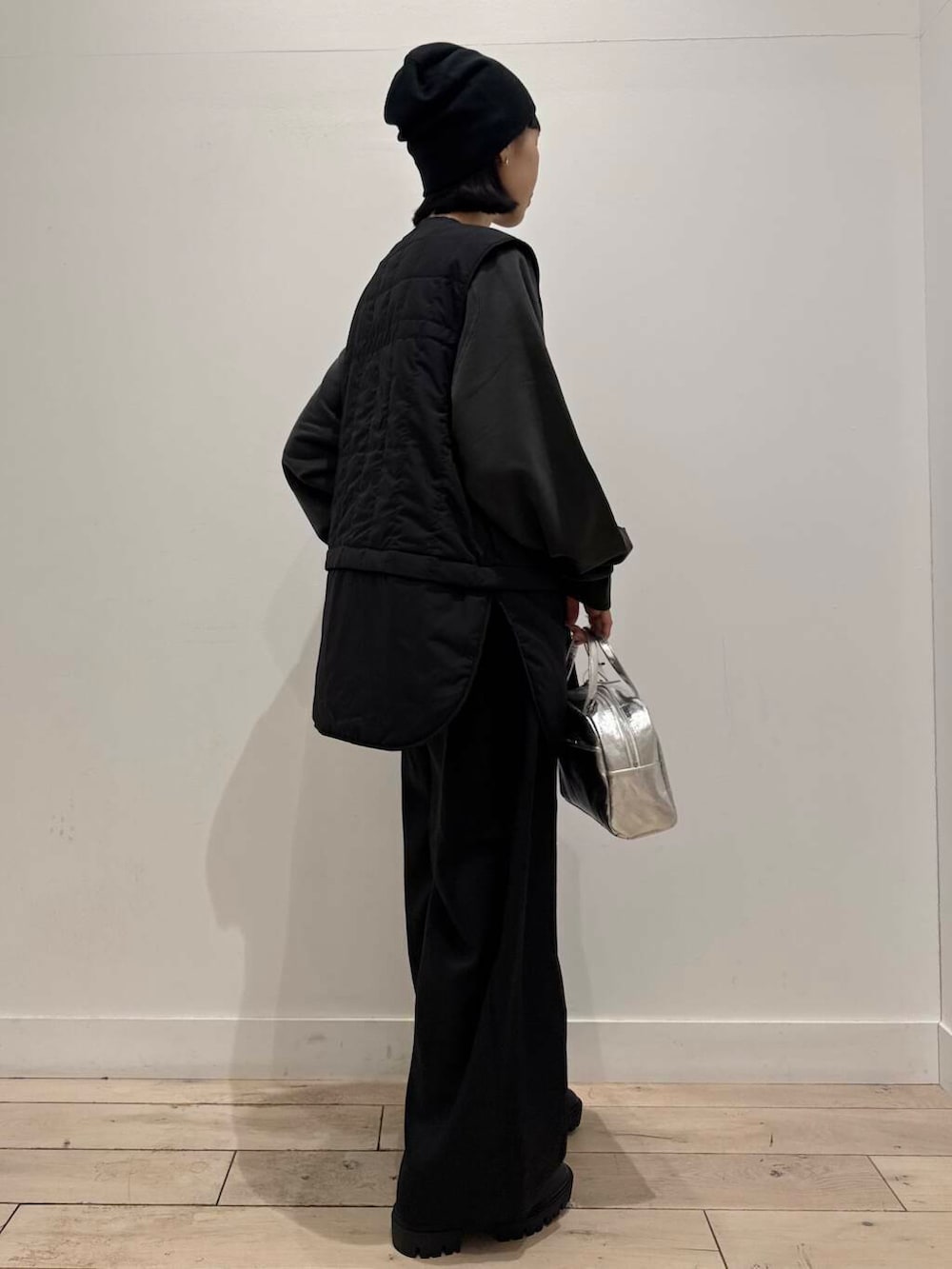 トップスとパンツもEKALでブラックコーデで組みました🐈⬛ベストは長いまま着用しましたが、短く着てもかわいいです^ ^