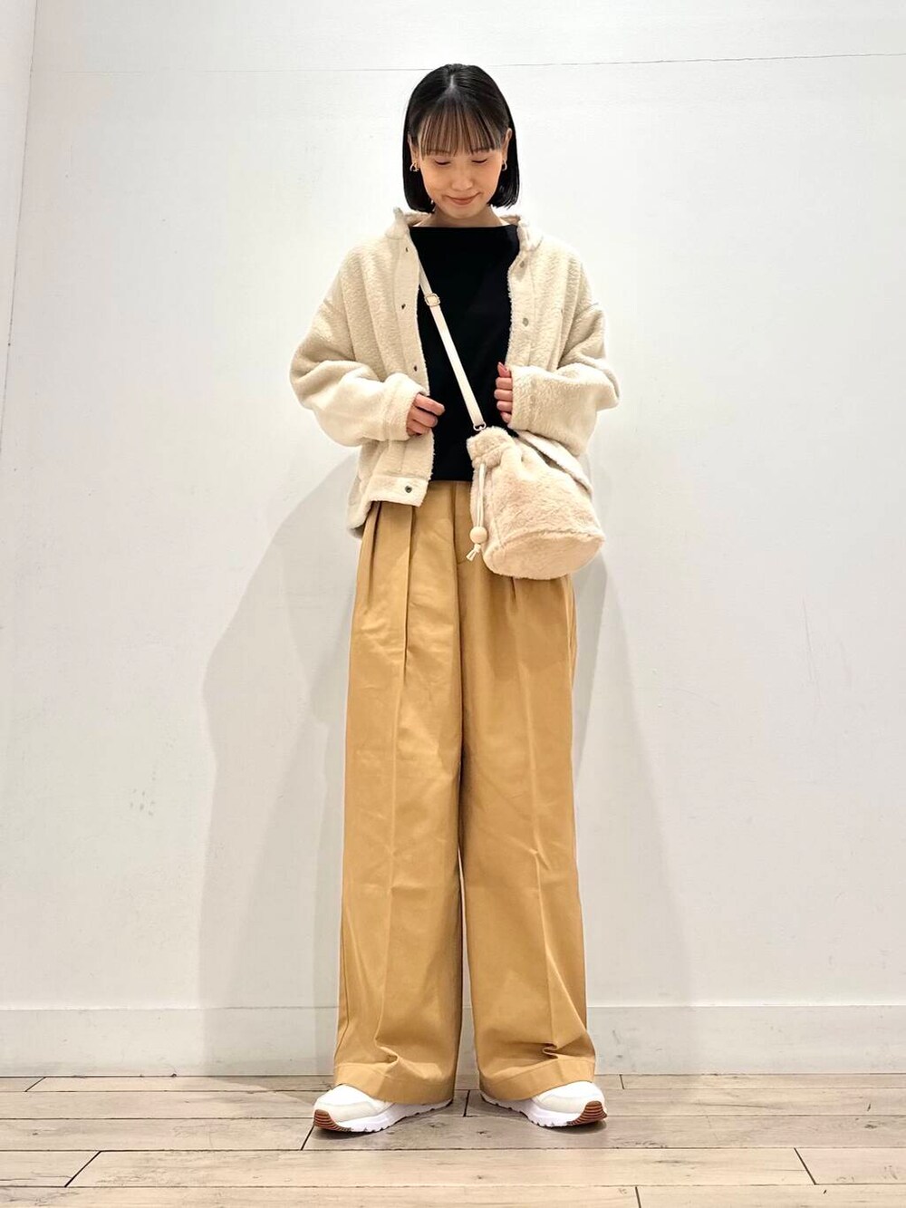 ショート丈なのでワイドパンツとの相性◎です!