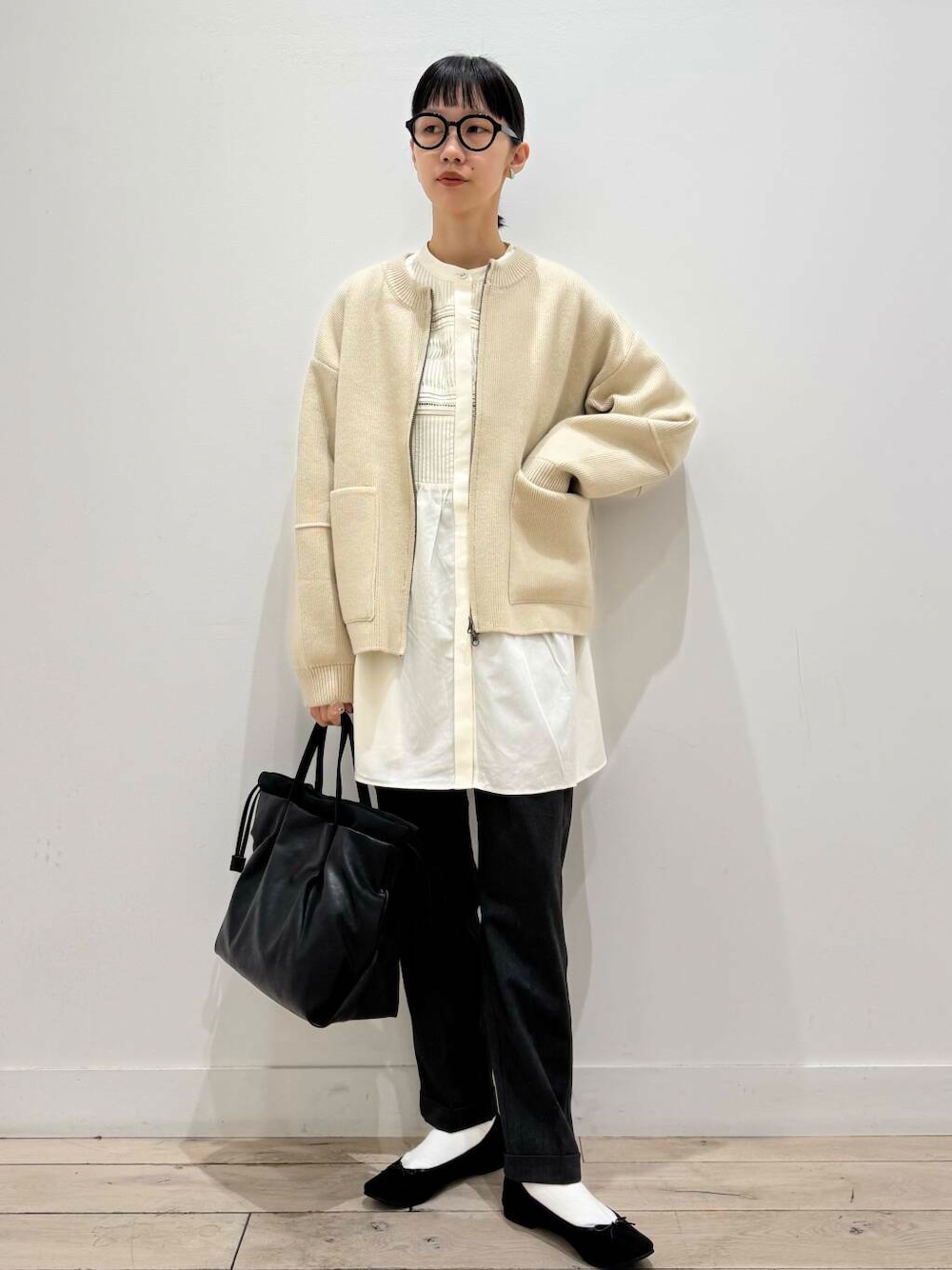 ニットブルゾンは大きめのポッケがかわいいです☺️
