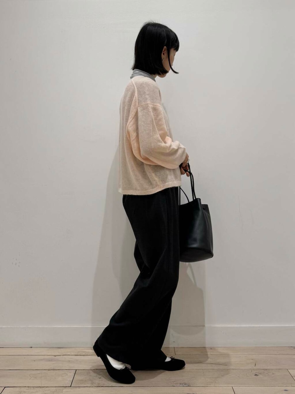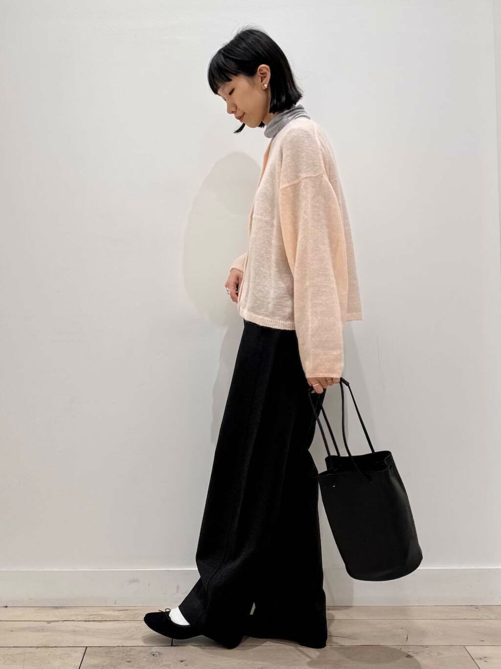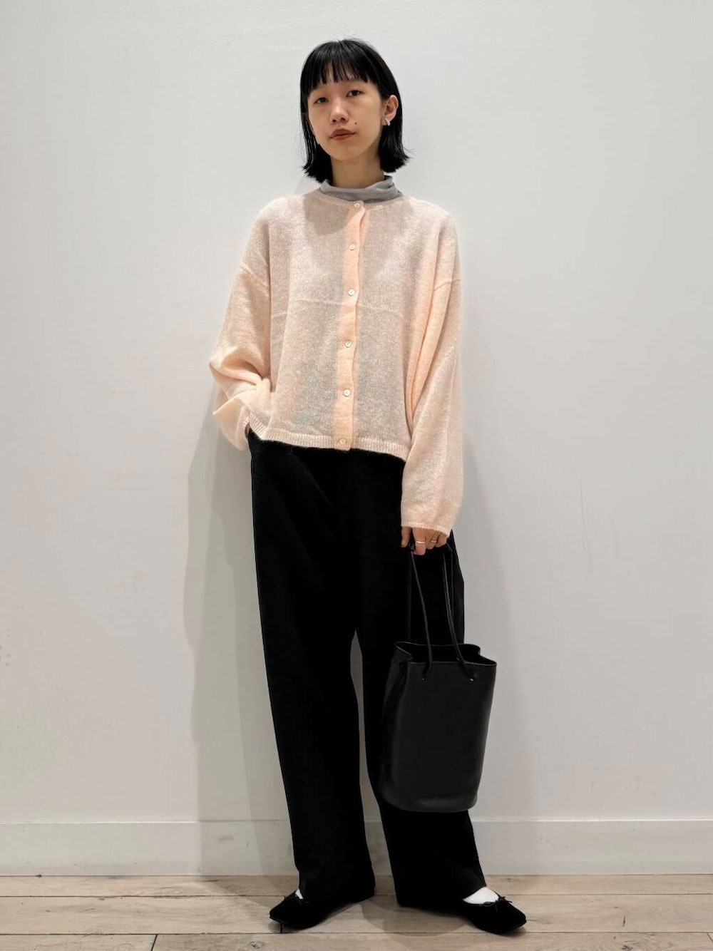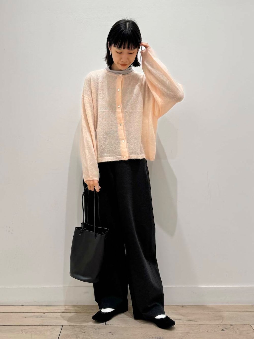 薄手でインナーの色味も少し出るので、かわいいピンク感が消えないよう柔らかいグレーを入れました^ ^