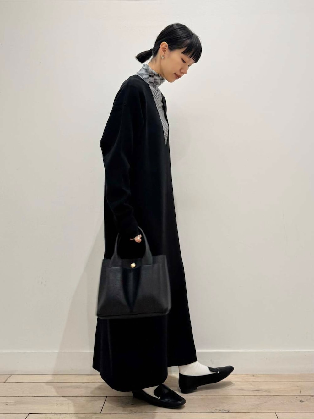 深めのVネックなので中にタートルネックのカットソーを合わせてみました^ ^