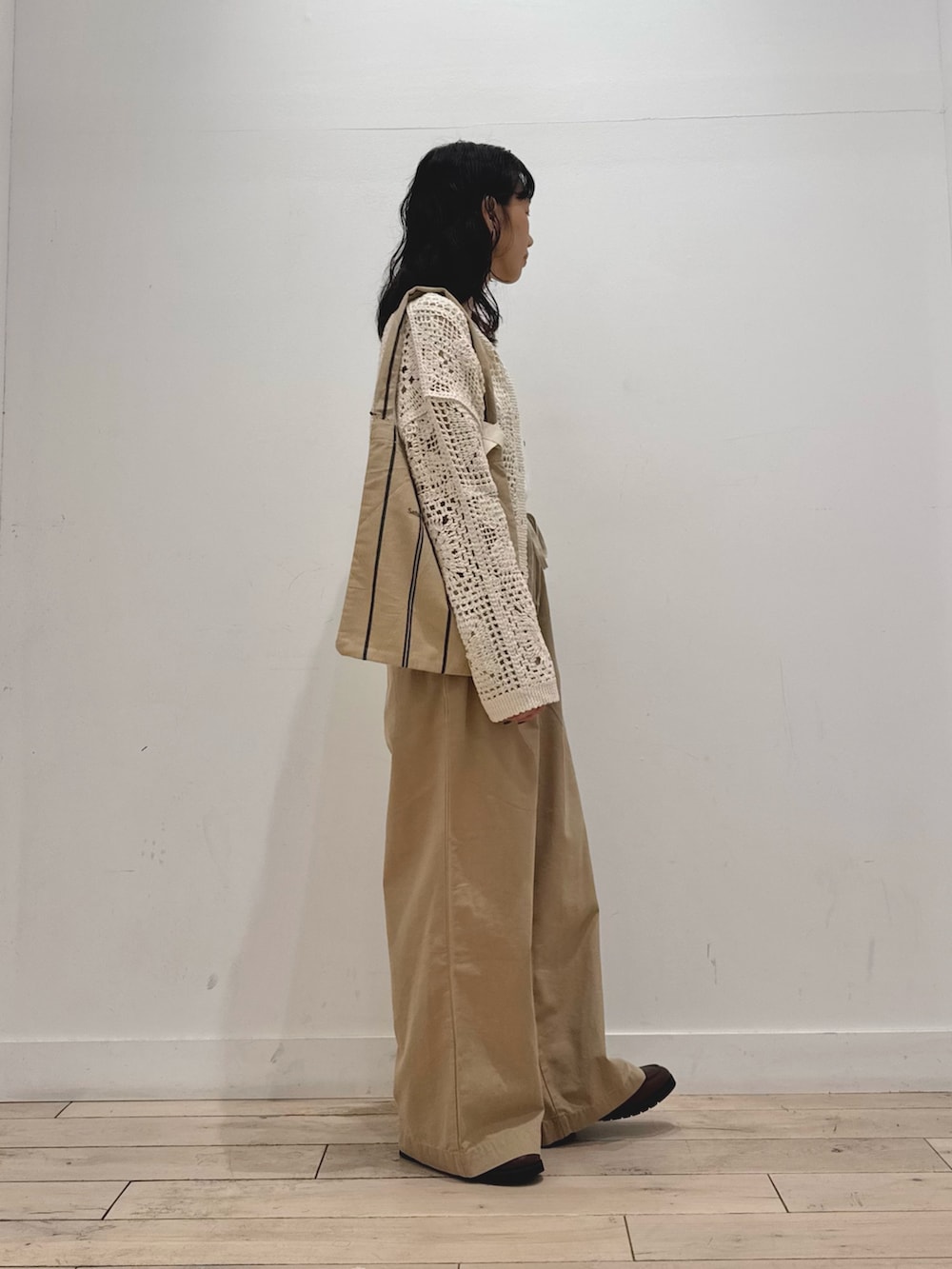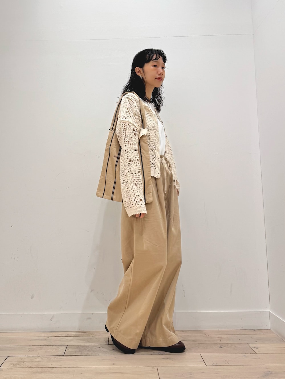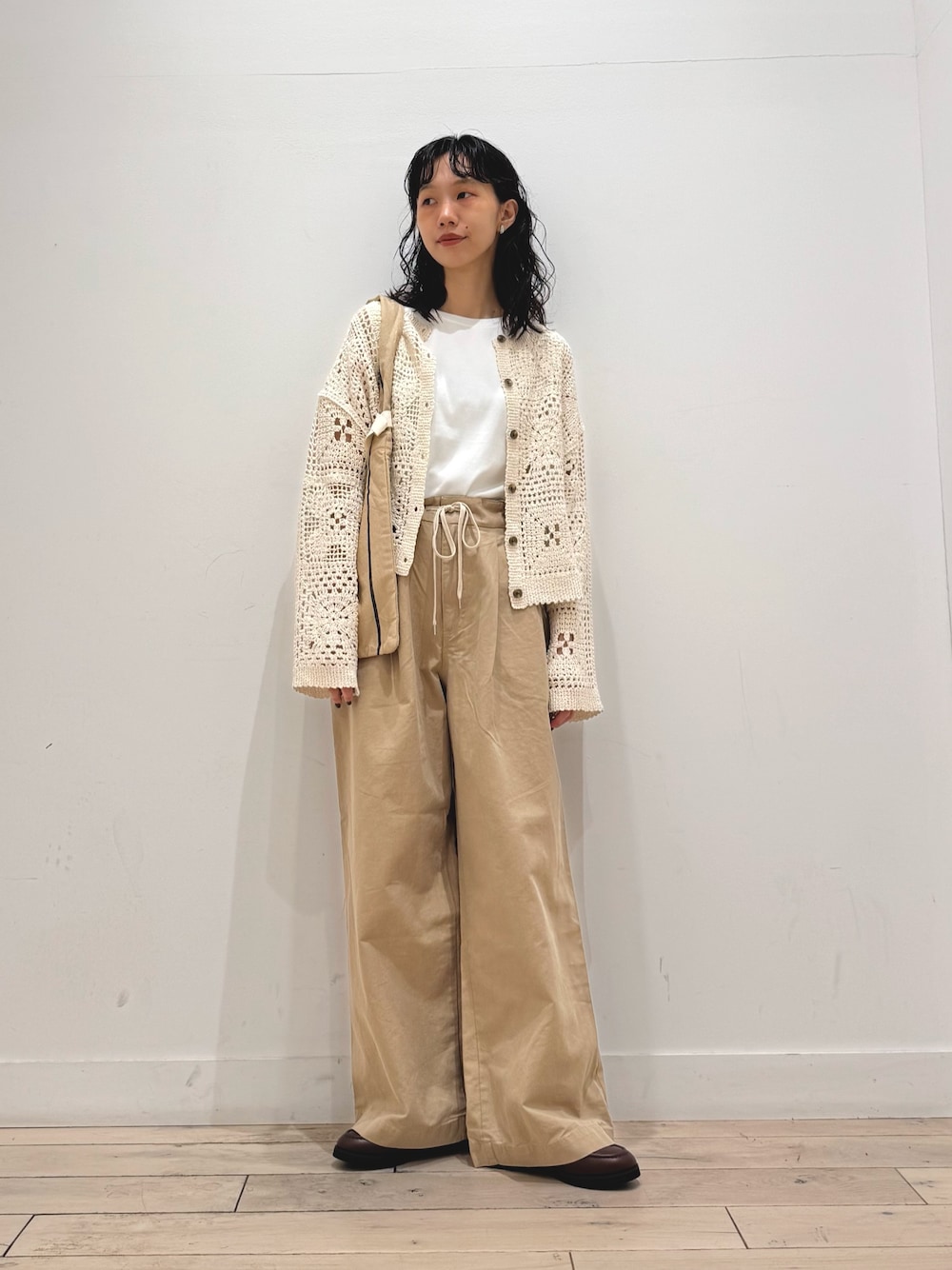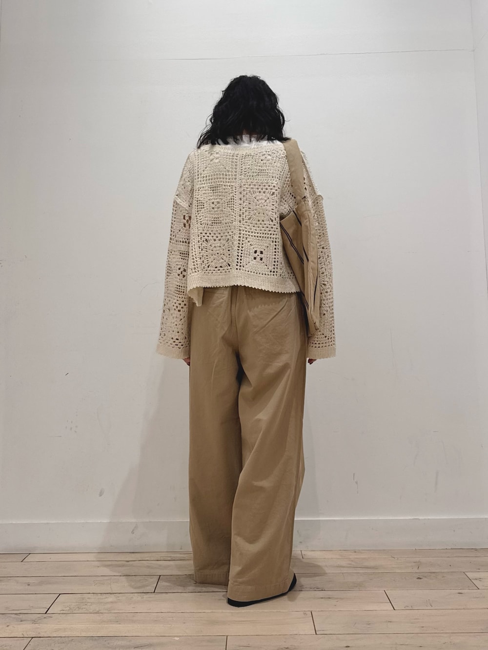 クロシェカーディガンはボタンを閉じてトップスっぽくも使えて、前後2wayなので雰囲気も変えられます◎