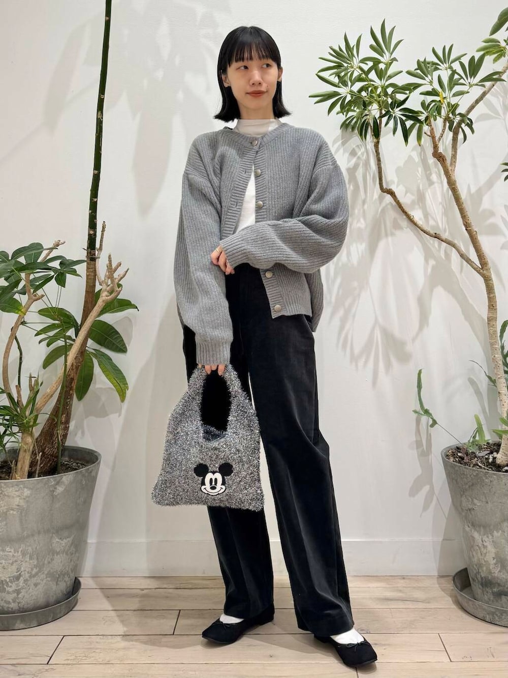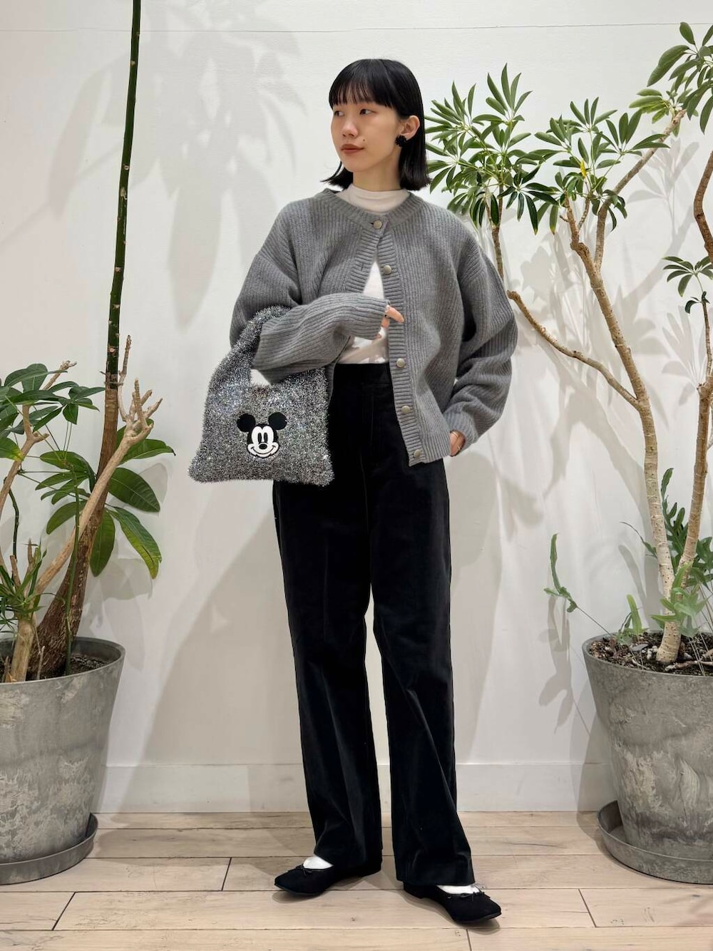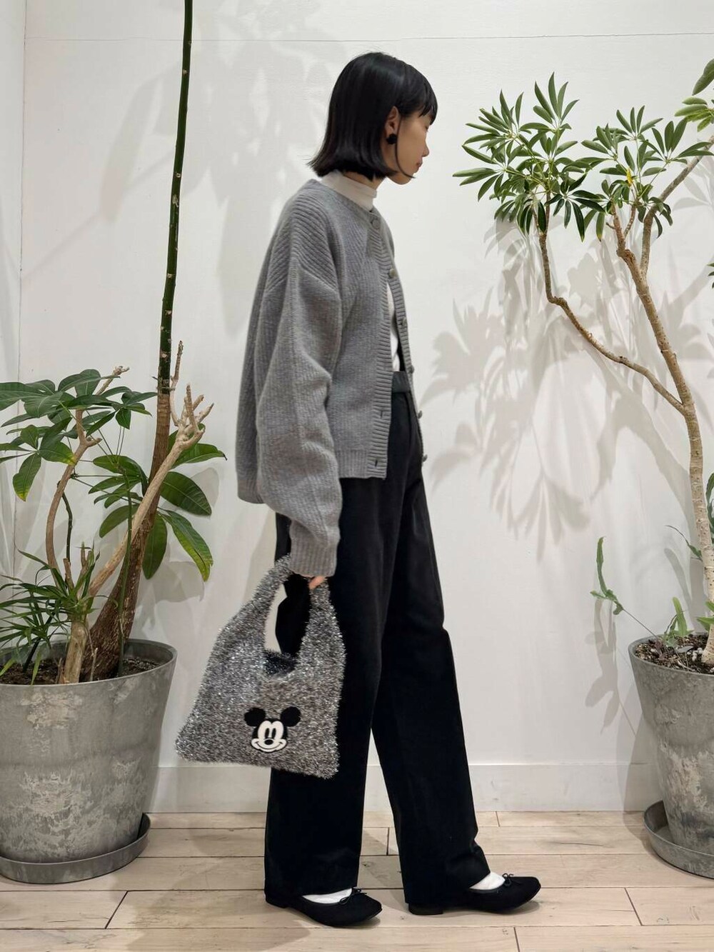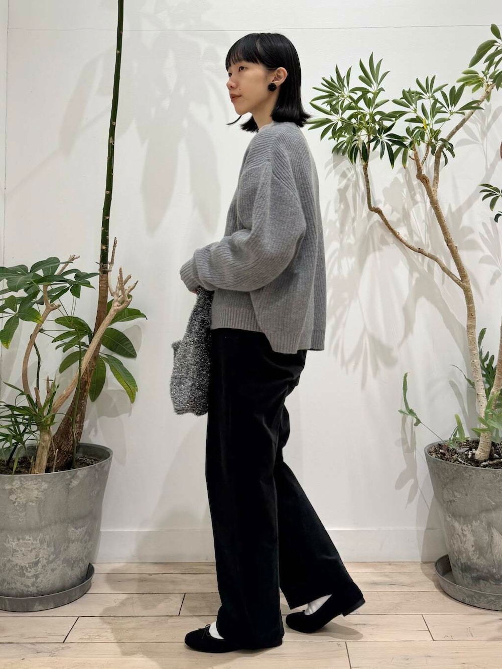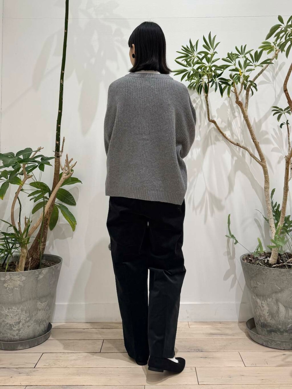 インナーに着ているかぐれのリブカットソー、肌触り良すぎるので是非お試ししてみて欲しいです!ボトルネックですが、首が閉まる感じではないです◎