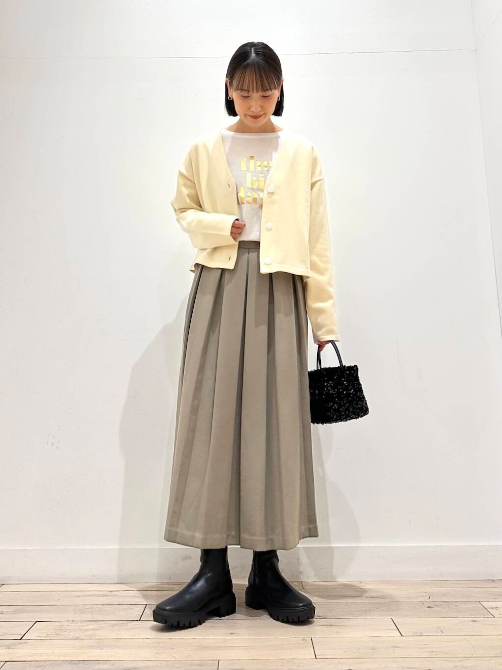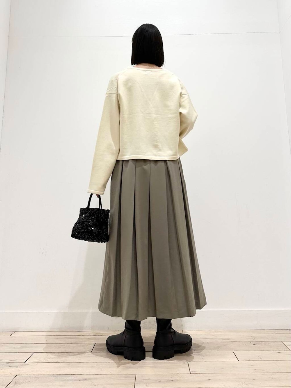 合わせたスカートは、トレンドの太めのプリーツになっています◎