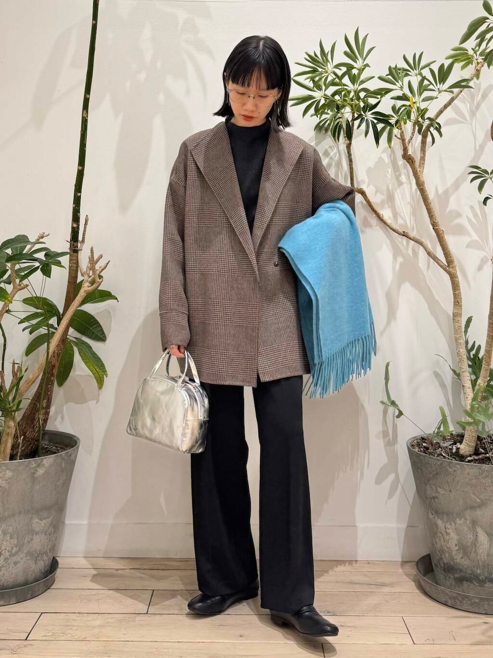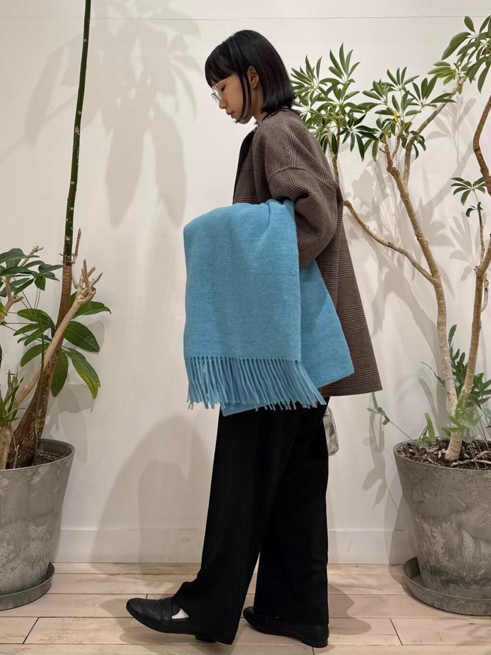 ブラウン×ブルーがすきなので、お洋服はシンプルに組み、ストールで色味を入れました^ ^