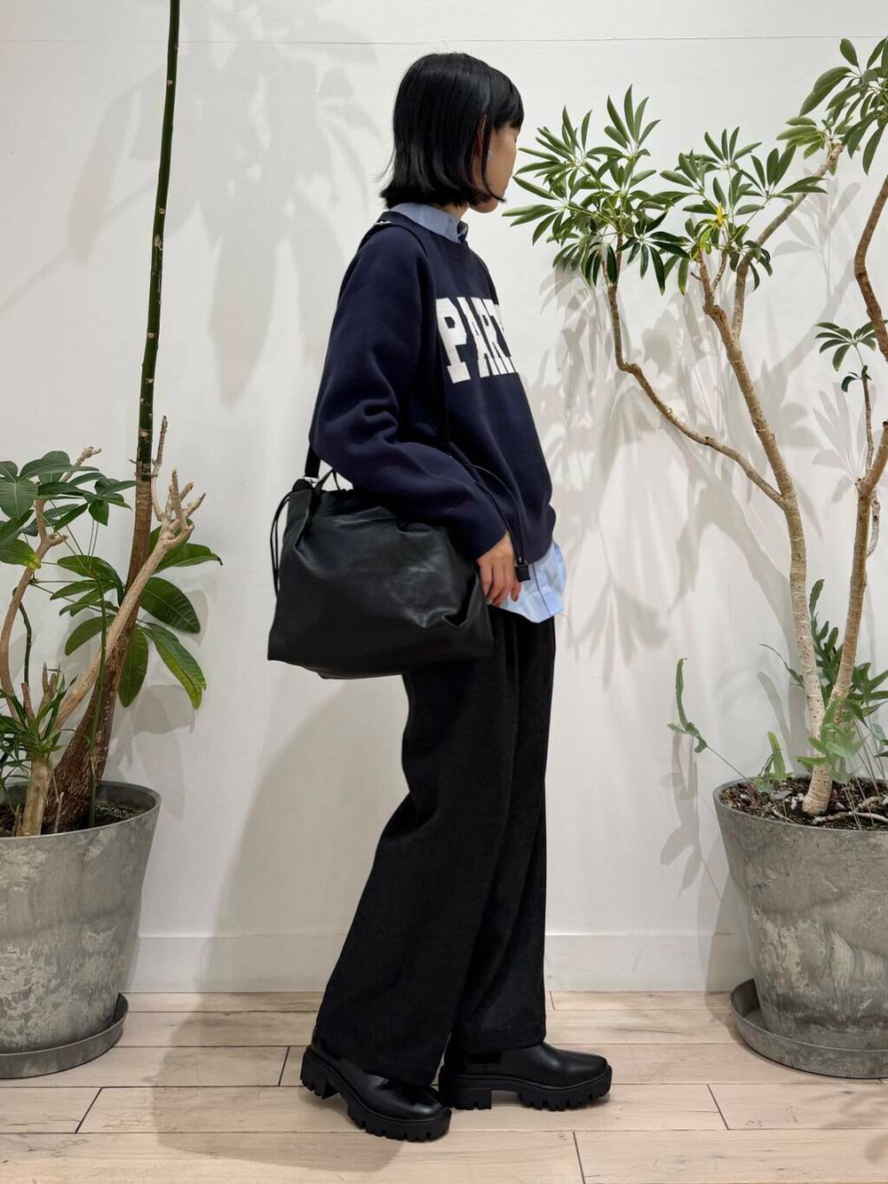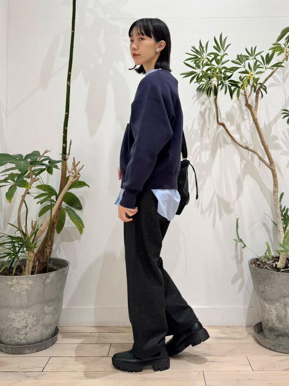 色味が落ち着いたネイビーなので幼くならないです◎生地感もニット寄りなんですが、スウェット感も少しあり、着やすいです!