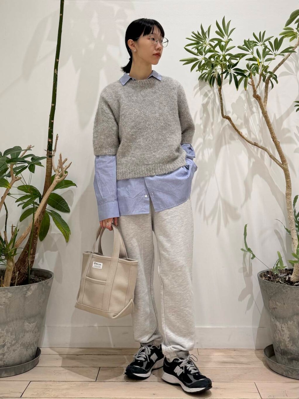 だいすきなスウェットにキレイめのシャツとニットを合わせました^ ^