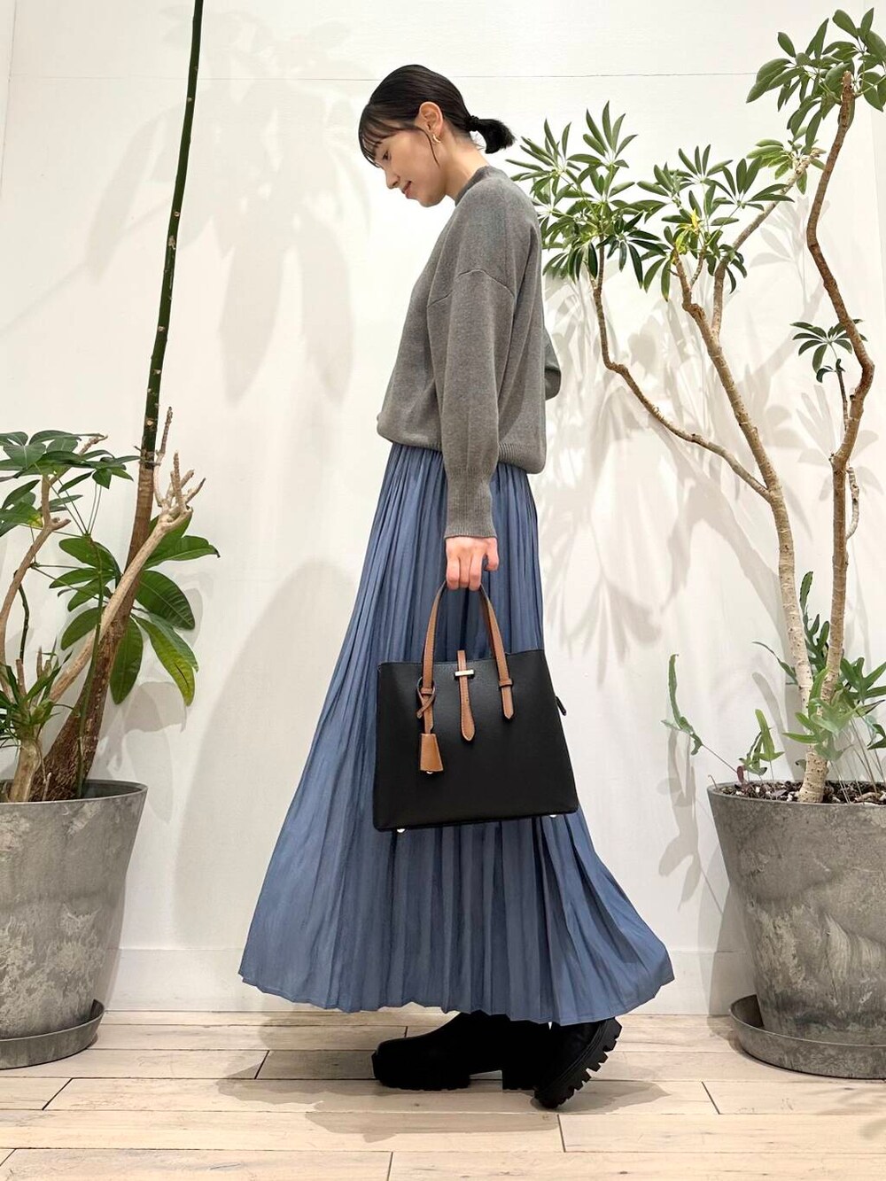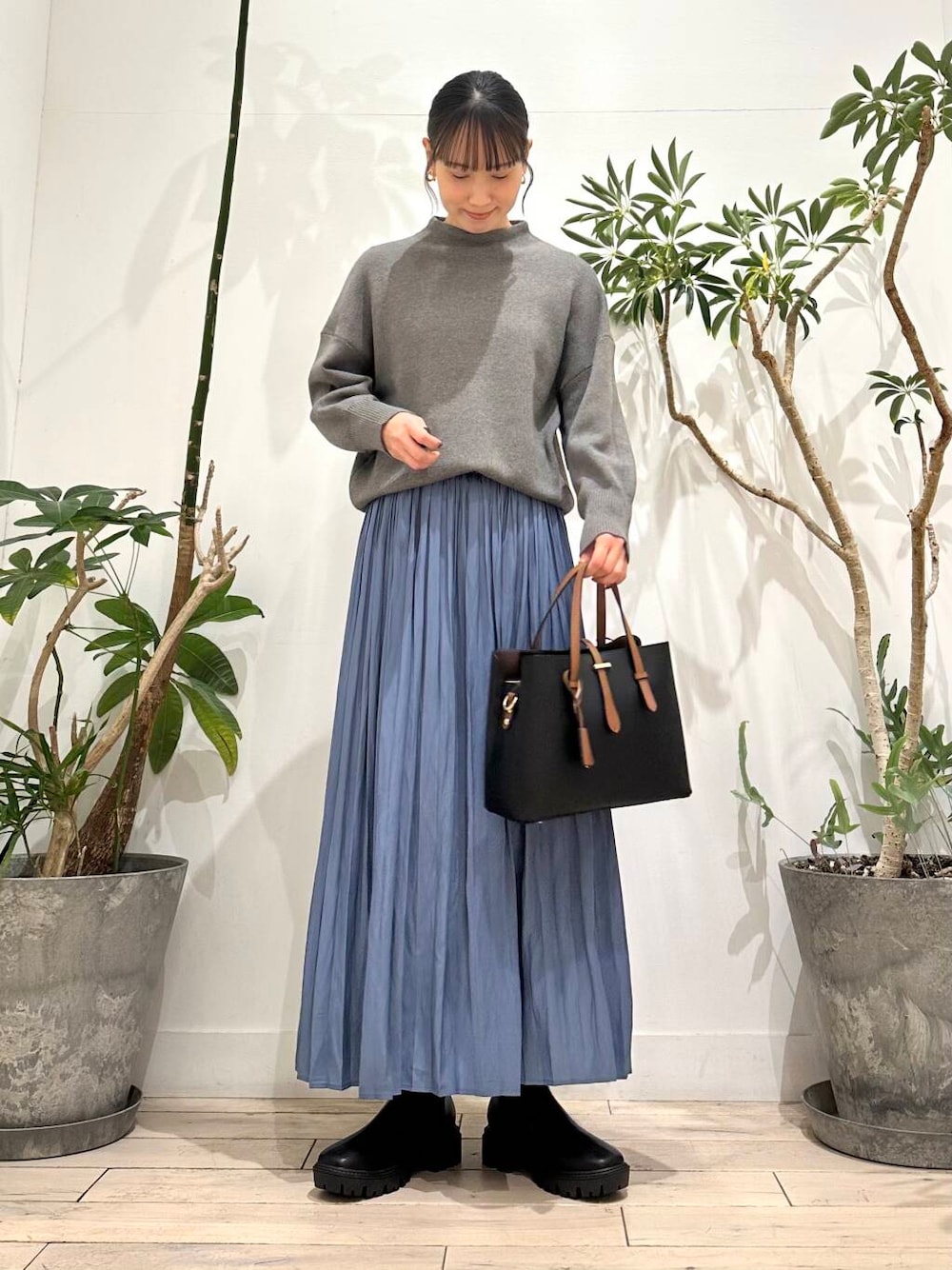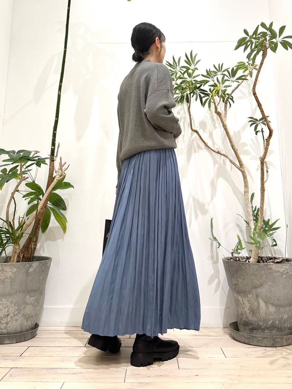 プリーツでも落ち感があるので広がらずにスッキリと着ていただけます!