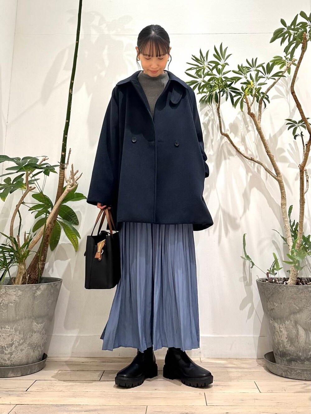 コンパクトなシルエットと少し立ち上がった首元がおしゃれな雰囲気にしてくれます^ ^