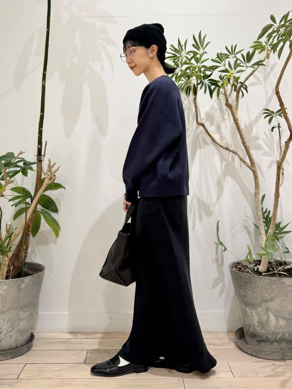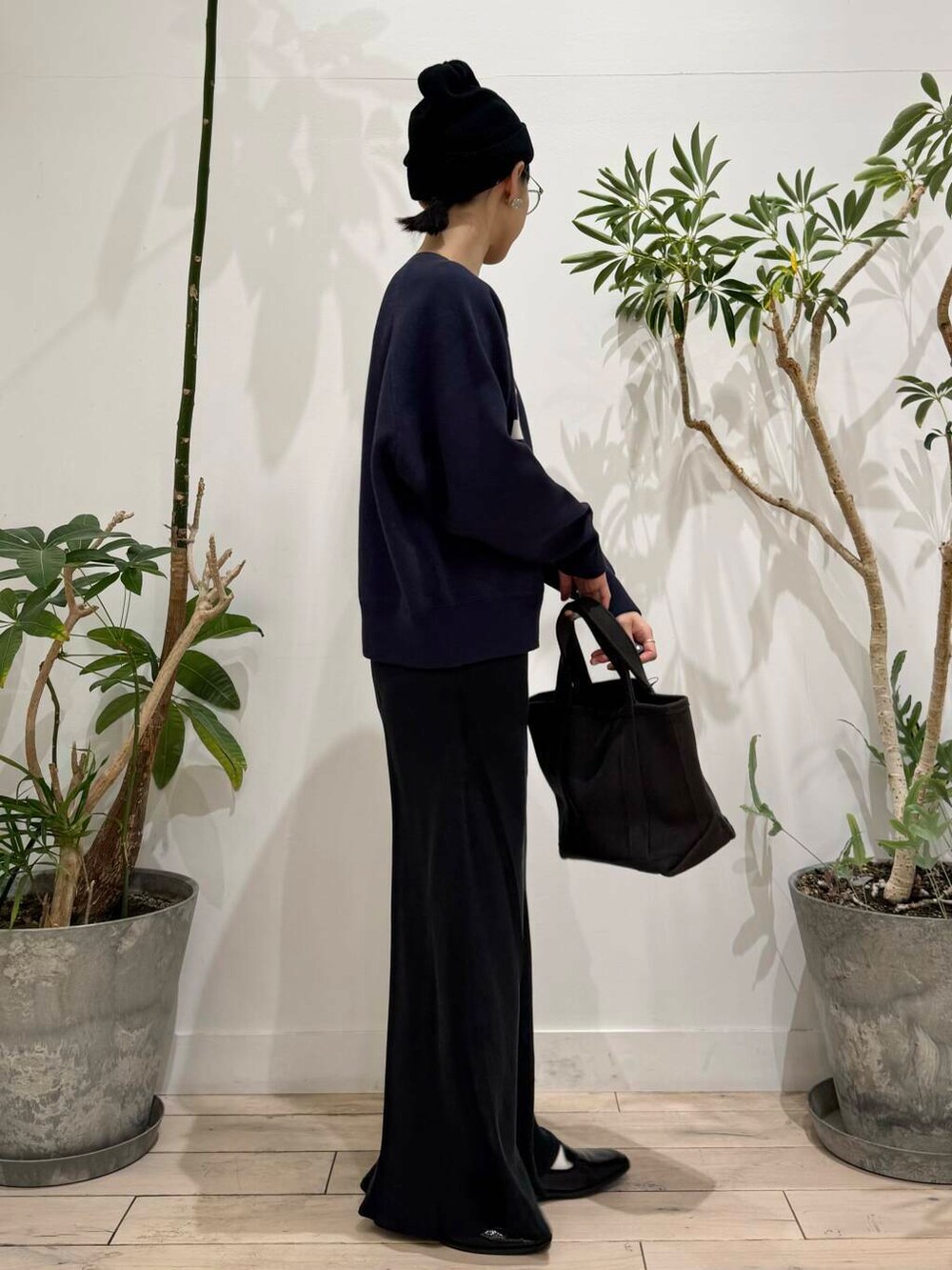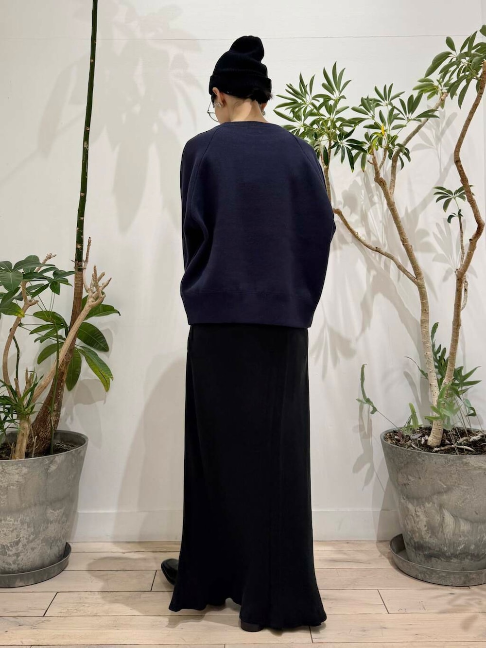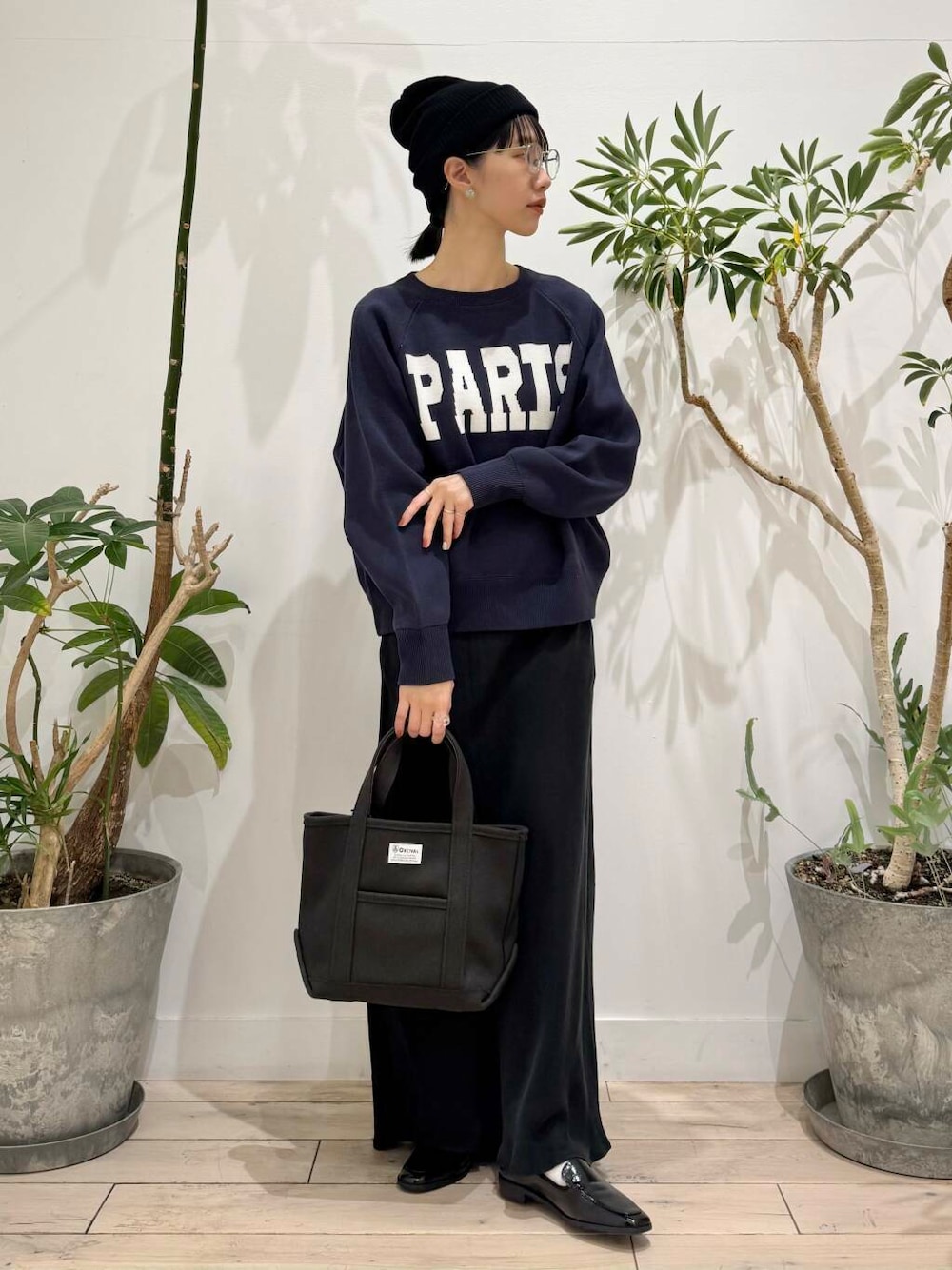 カジュアルなロゴニットにテロっとした綺麗めスカートを合わせました^ ^