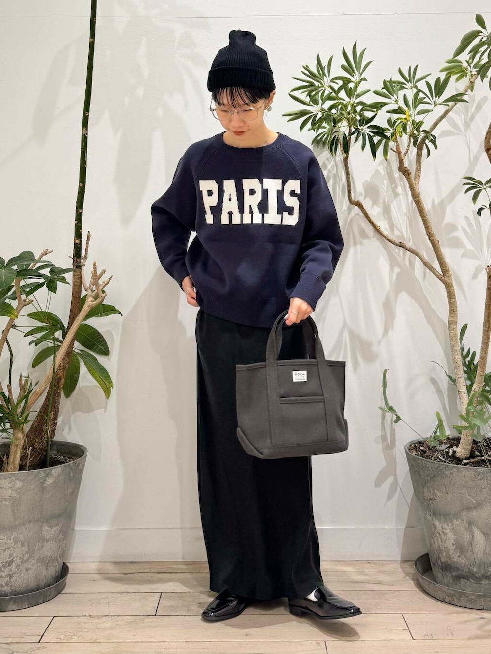 カジュアル寄りに組みたかったので、小物はニット帽とトートバッグで👜