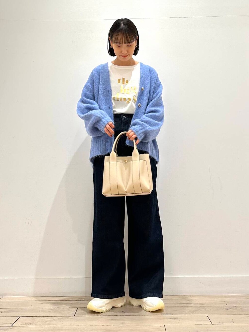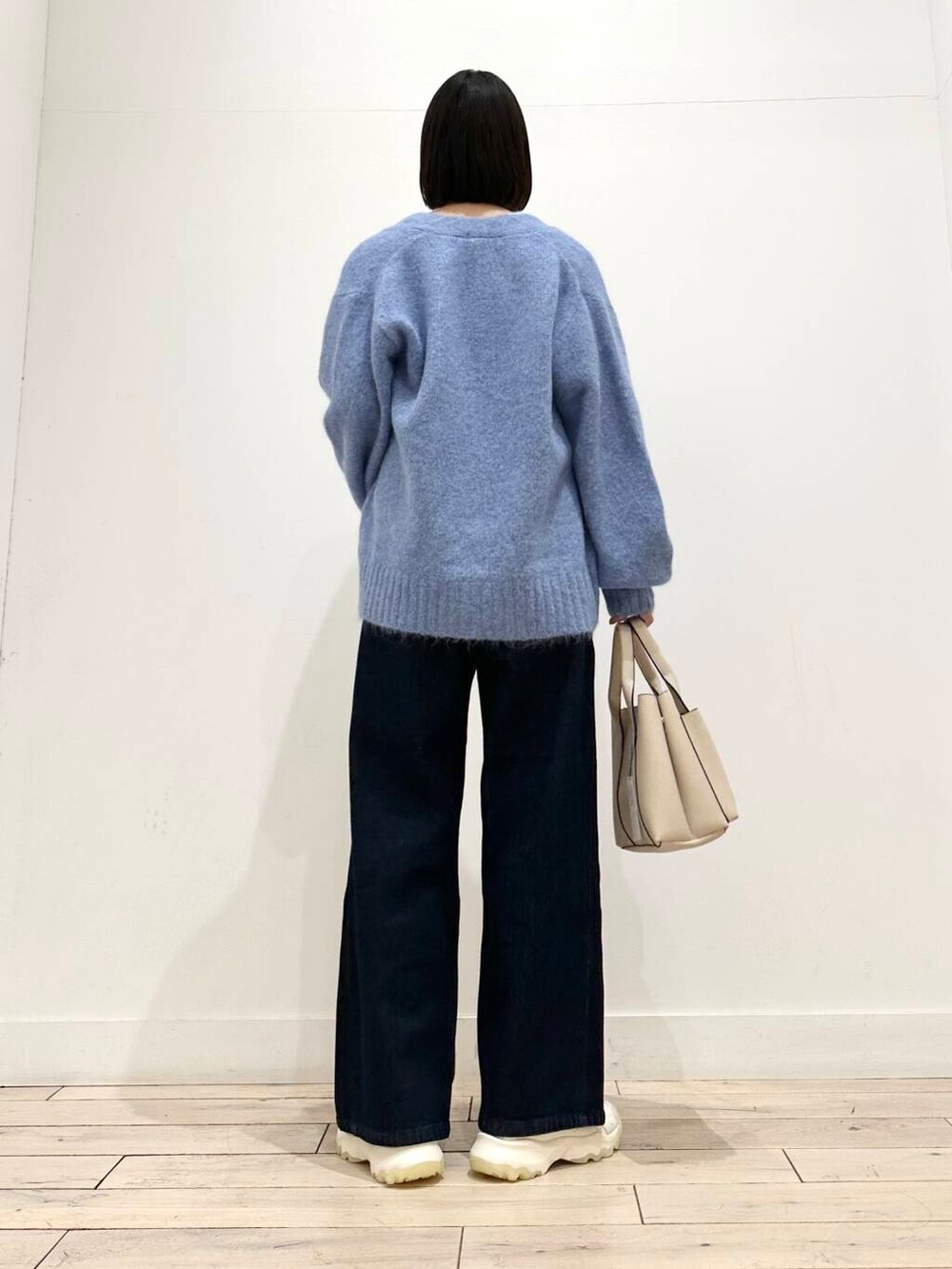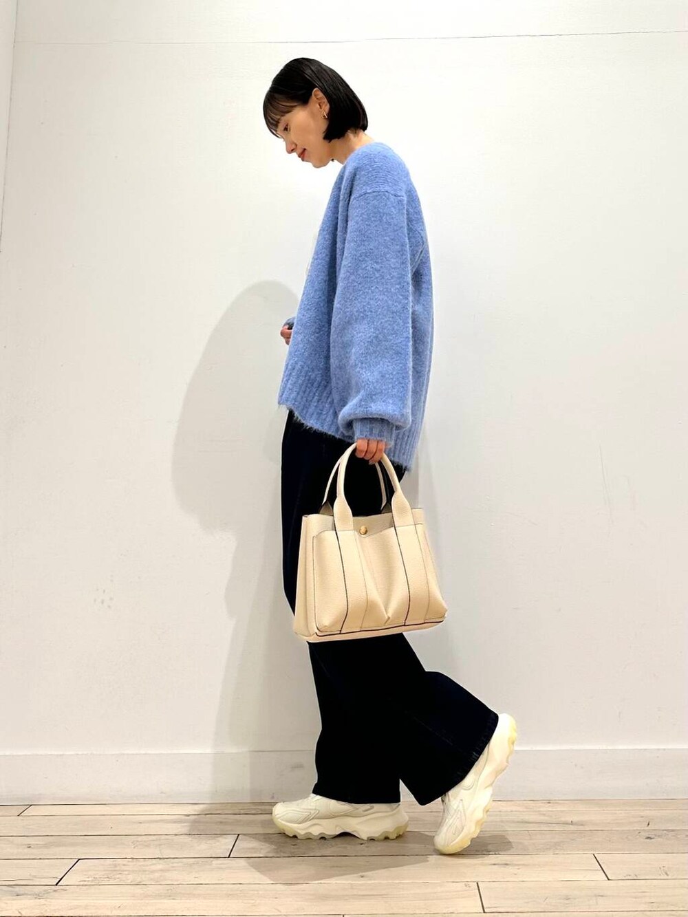 合わせたデニムは裏起毛になってますが、もこもこしていないので長いシーズン履いていただけます!