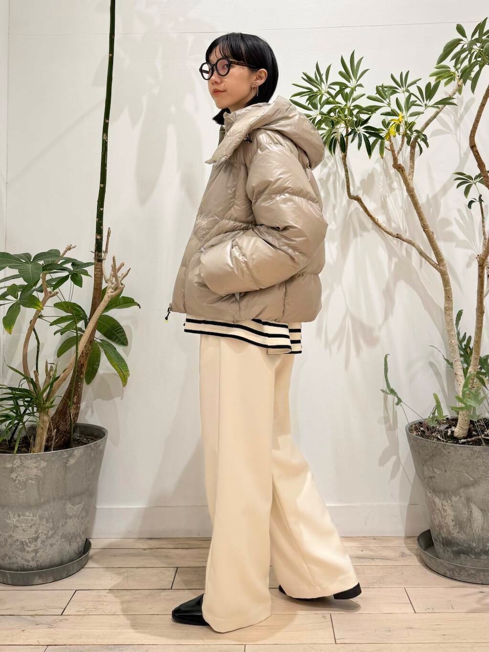 ツヤっとしたベージュはホワイトと相性抜群です◎ジップのイエローがポイントになっていてかわいいです!🍋
