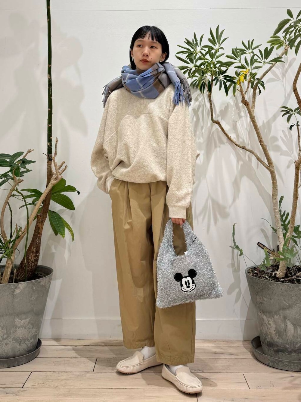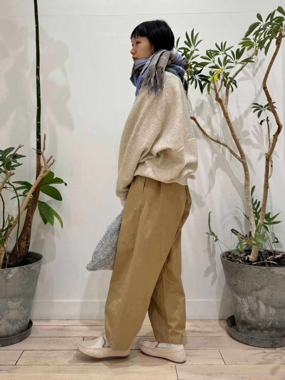 淡い色味で組んでみました。黒が多くなりがちな冬こそ、淡い色味のお洋服いかがでしょう^ ^