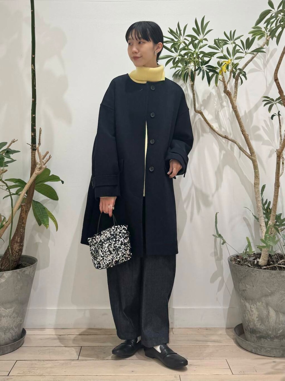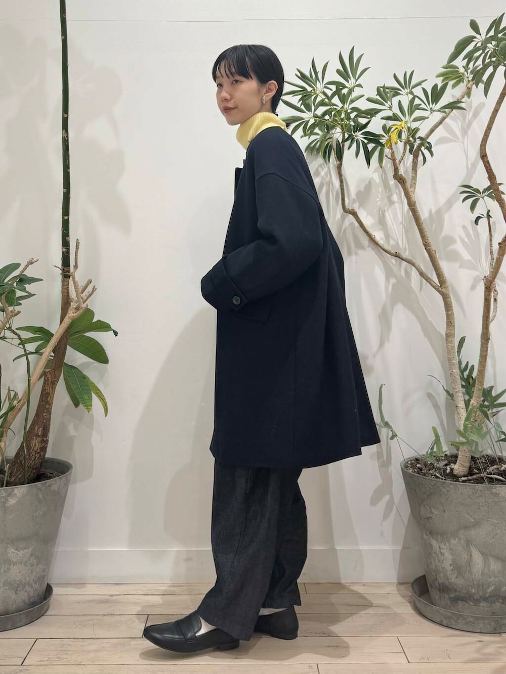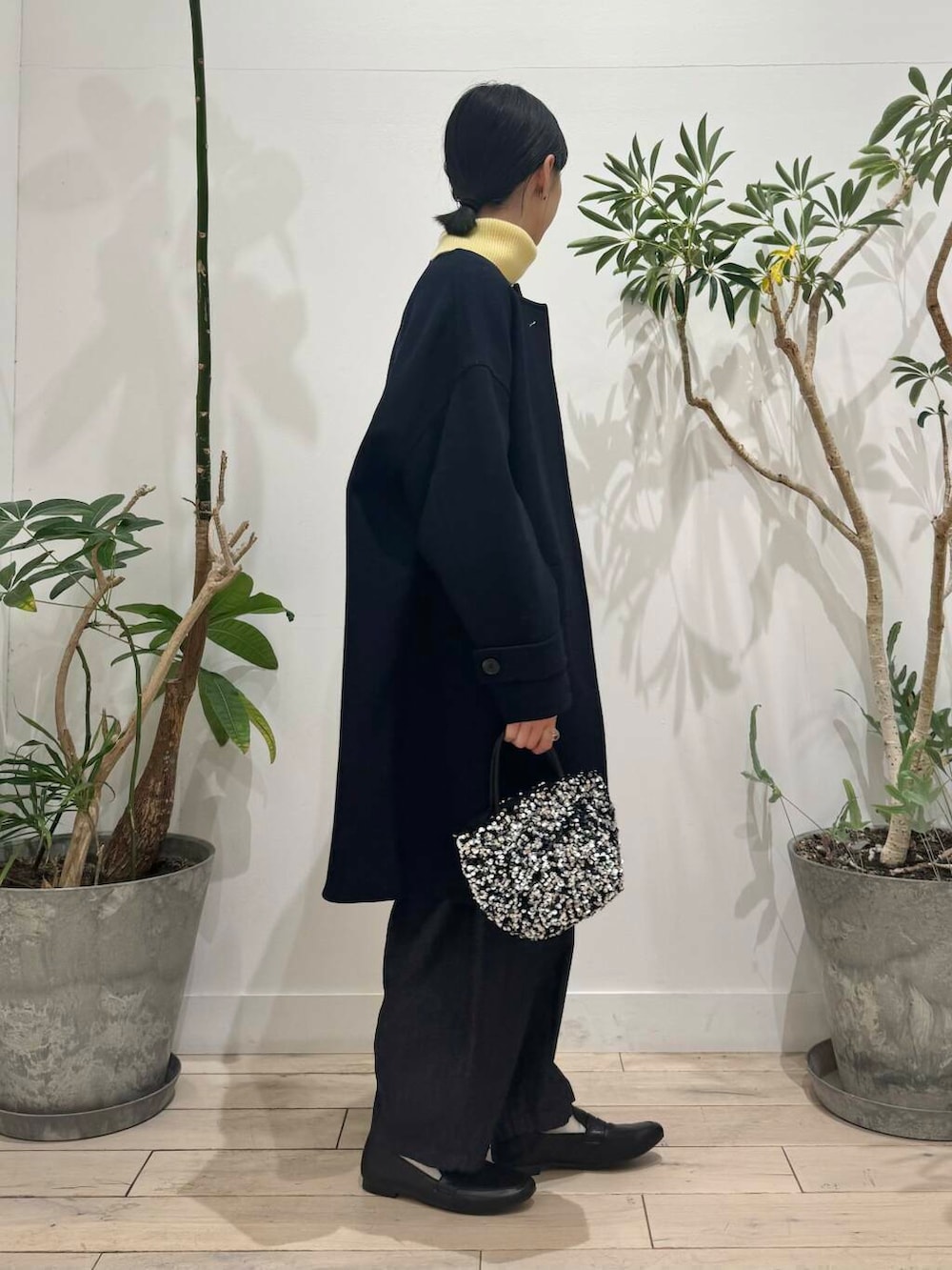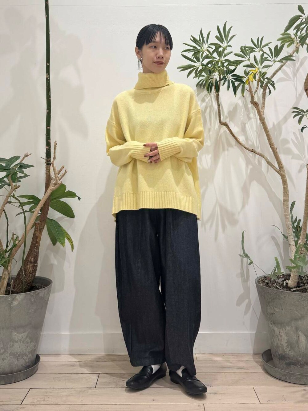 淡めなイエローのニット、冬に多い黒やネイビーのアウターによく映えます🐤