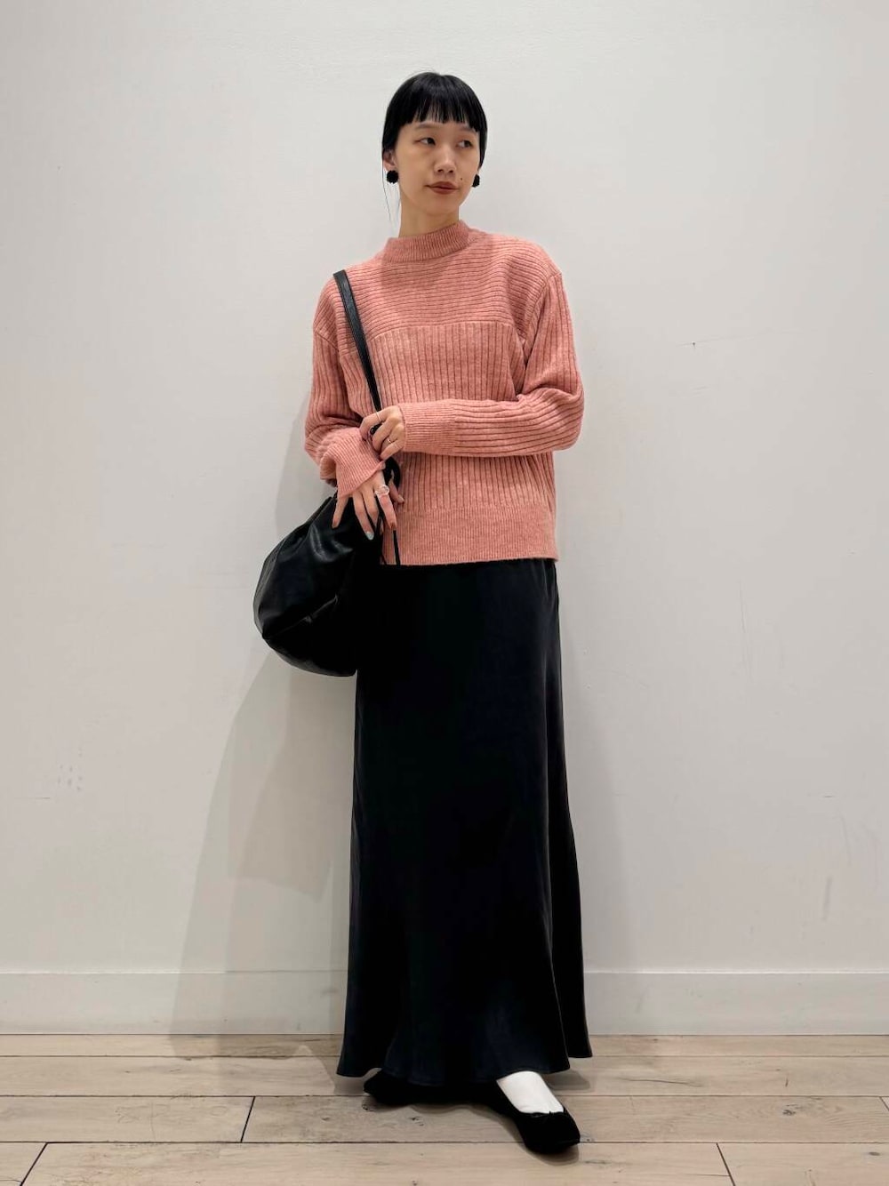 ピンクのリブニット、少しもちっとしていて着心地がいいです🐏♪