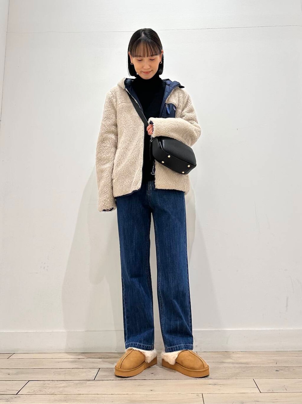 ボアを表にすると中がつるっとしているキルト面になるので、インナーがニットになってももたつくことなく羽織っていただけます👍