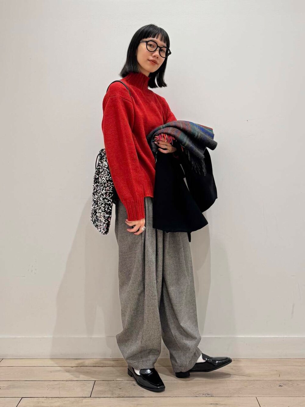 暗めのお洋服が増える冬に差し色にもなり、柄物もプラスできるtweed millのウールストール、皆様もプレゼントにいかがでしょう🎁