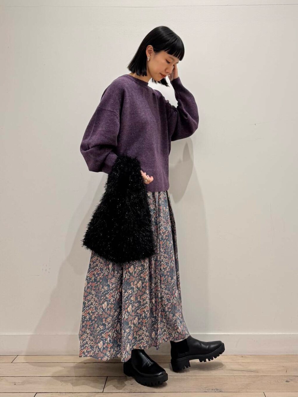 裾のリブが細く綺麗なので、1枚でサラッと着やすいニットです◎