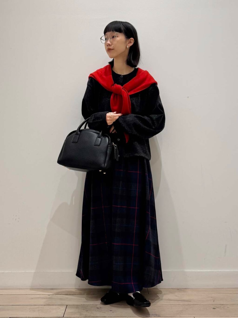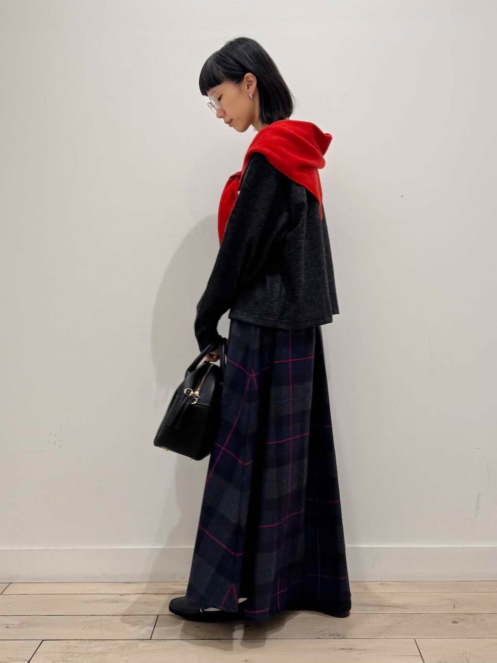 ニットストールはカシミヤでとても肌触りがよく、肩掛けに適した形をしているので、整えなくても綺麗に肩掛けできます◎