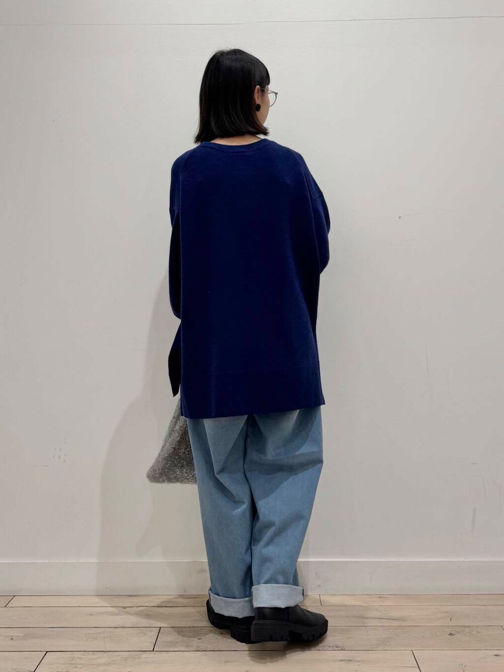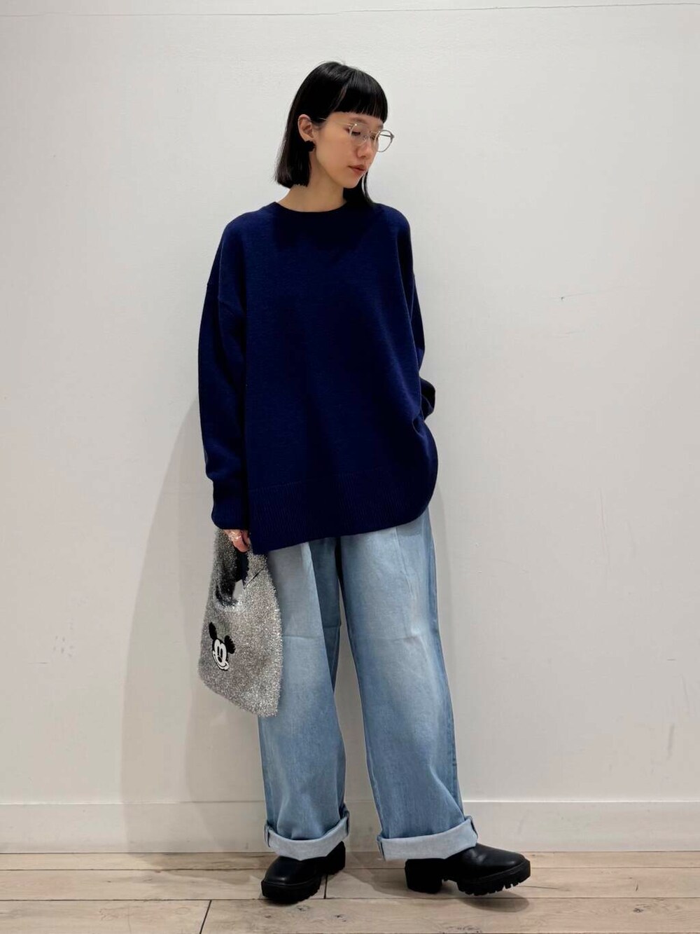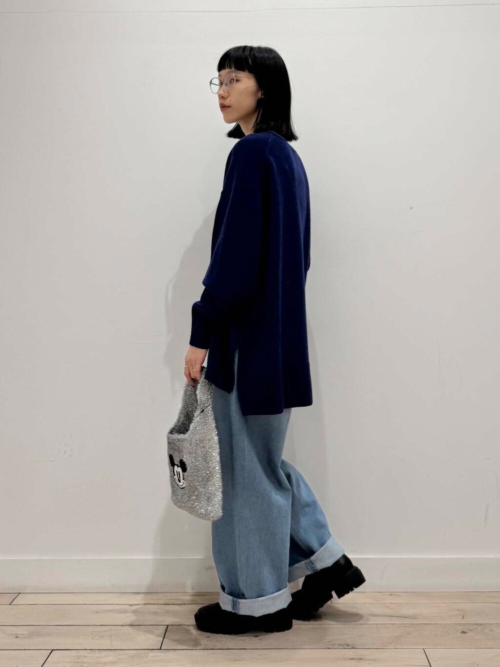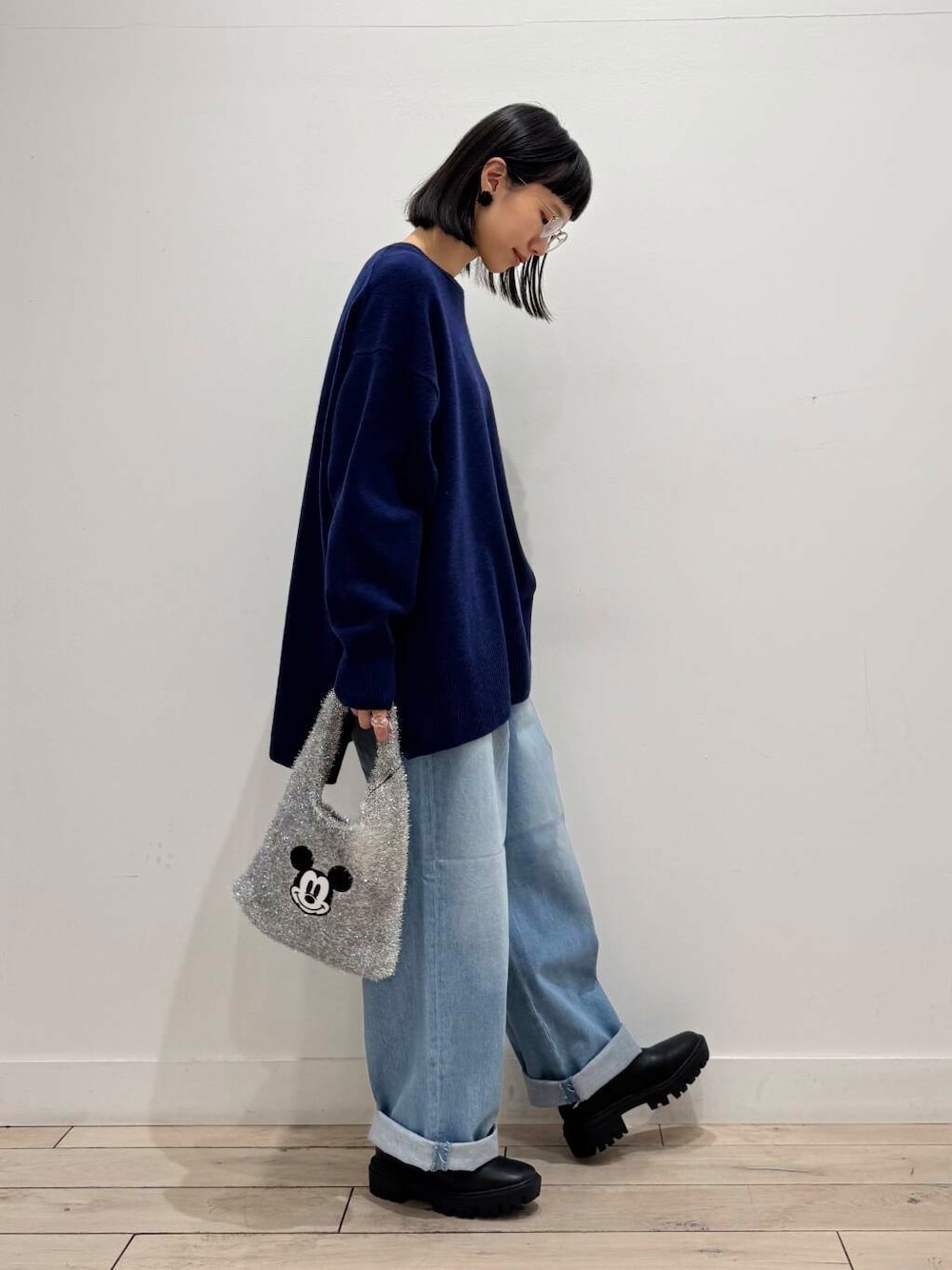 少し長いので裾を折り、ワイドニットで合わせてゆるっとカジュアルコーデにしました。