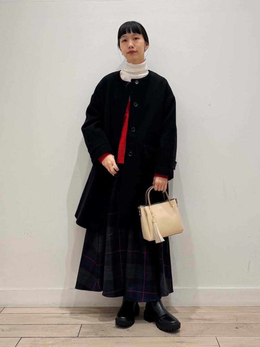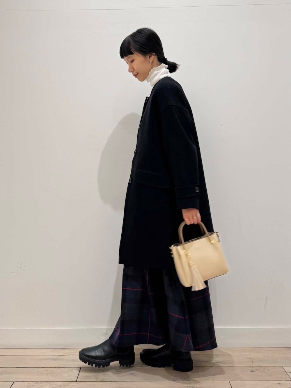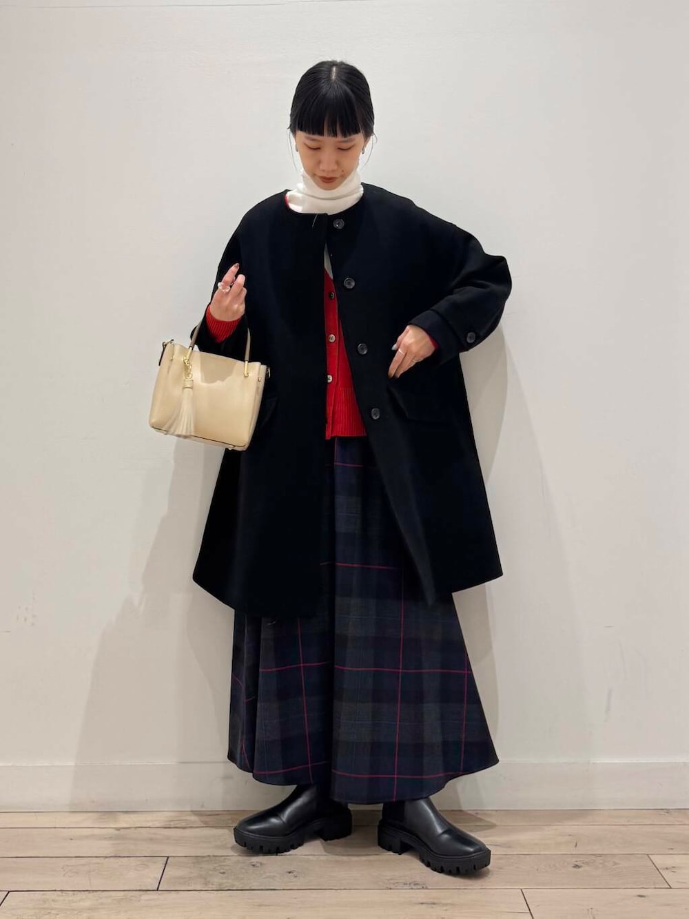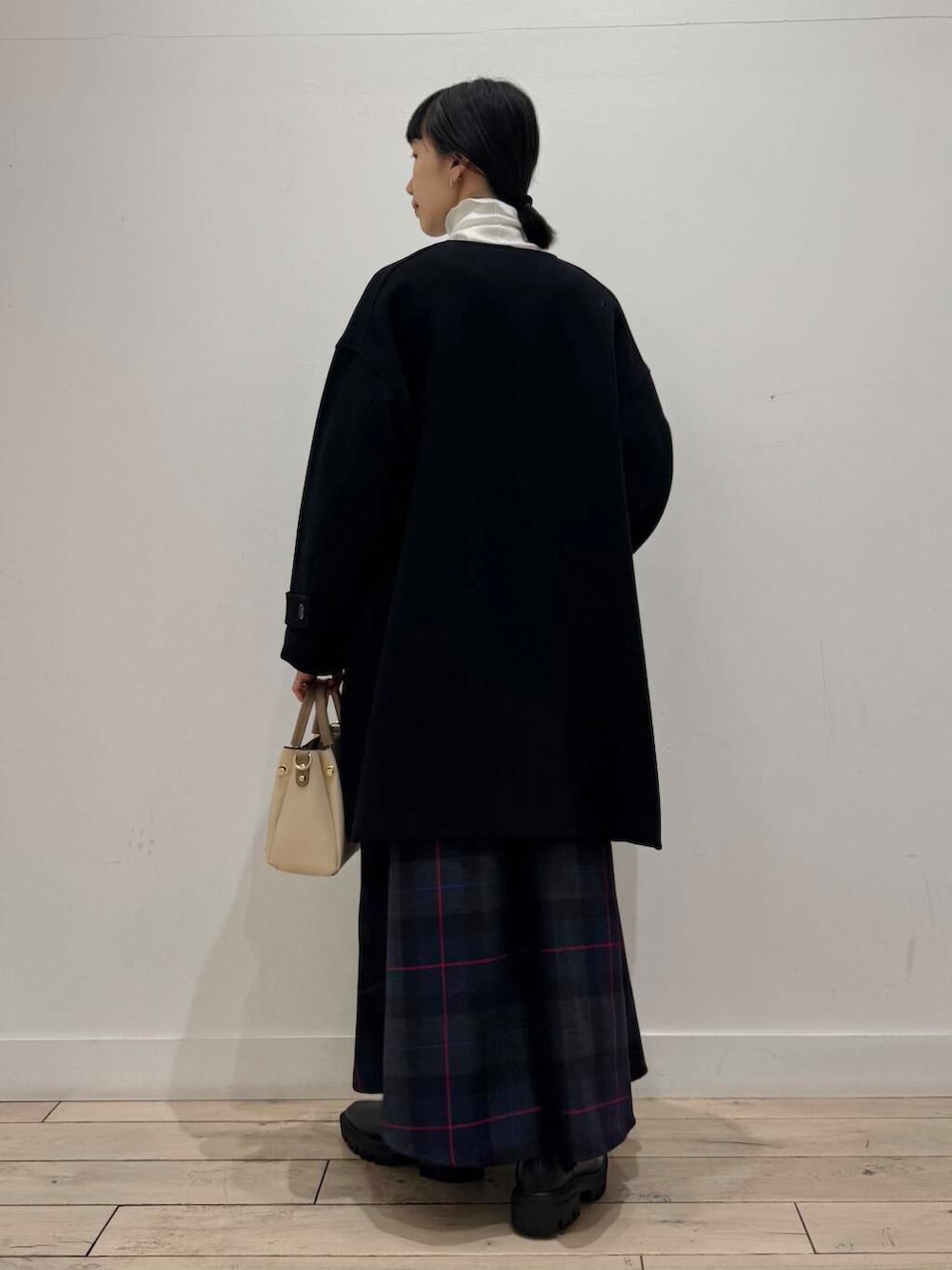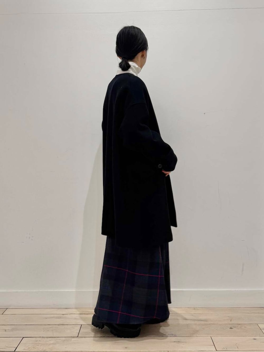 ノーカラーコート、丈が絶妙でフレアスカートの相性いいです◎