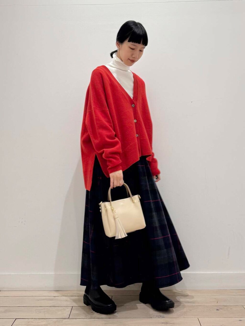 O'NEILの赤ラインとニットカーディガンを赤にしてホリデー感出しました!足元もブーツで綺麗めに☺️