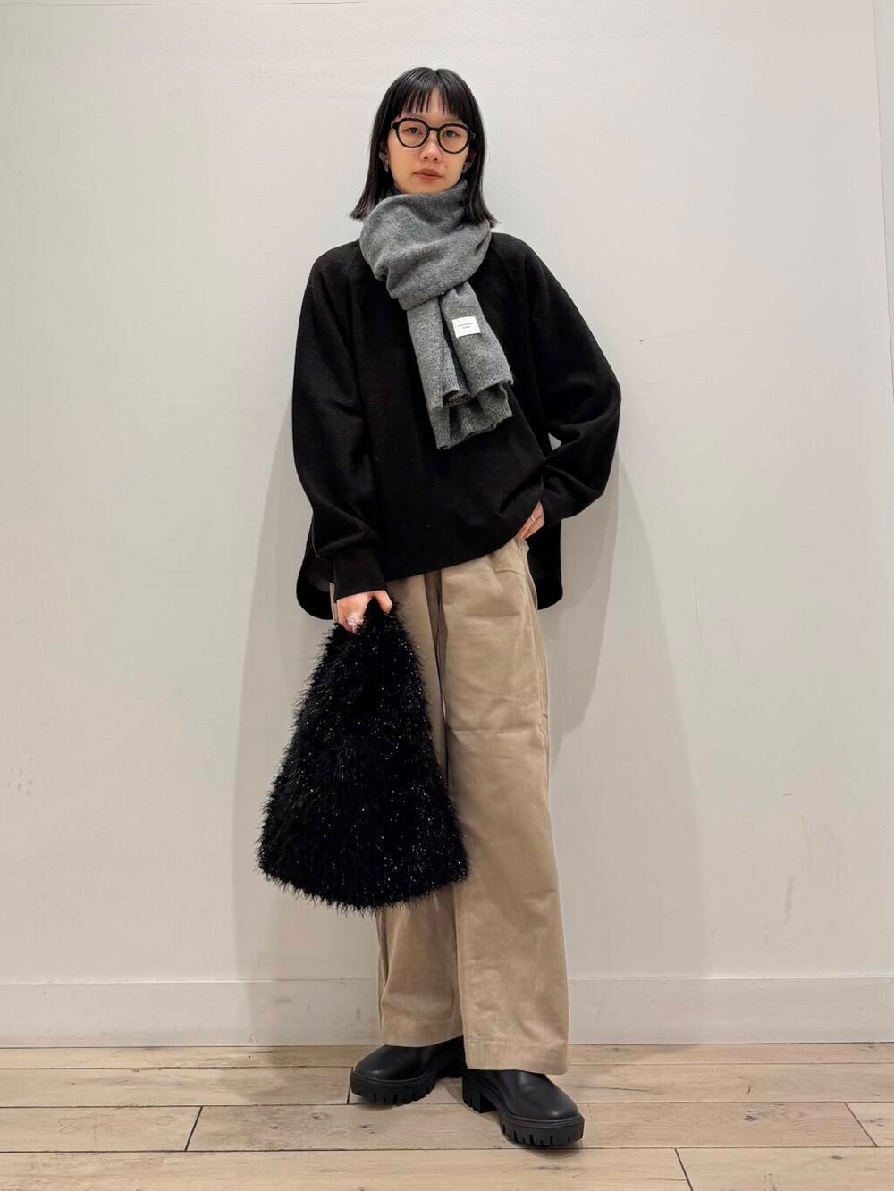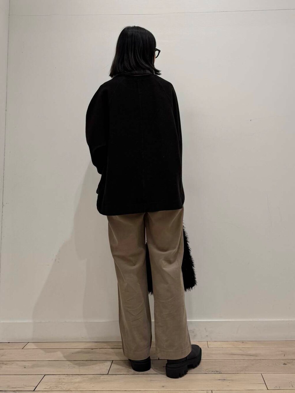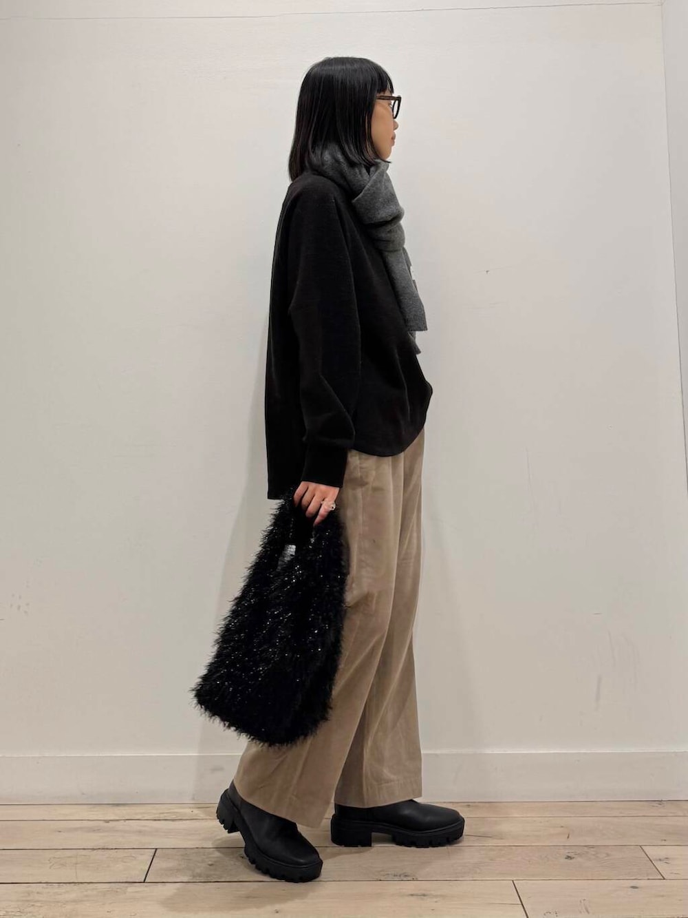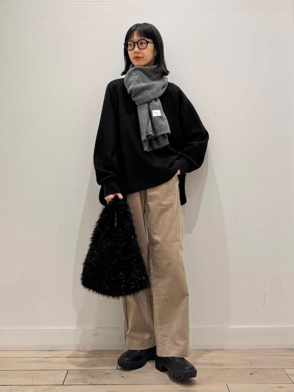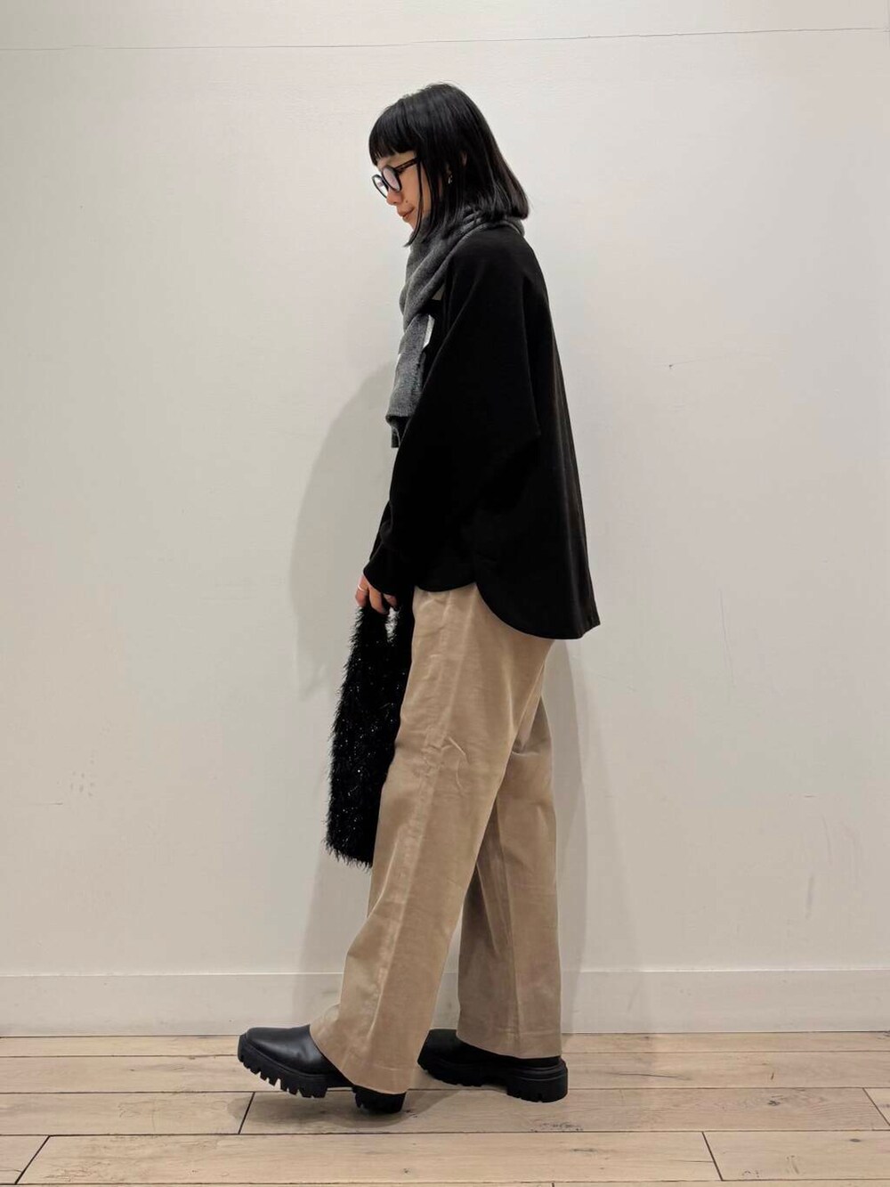 トップスは表面が起毛感あるのでニット見えしますが、カットソー生地です。フレア感もさりげないので、シンプルに着ていただけます◎